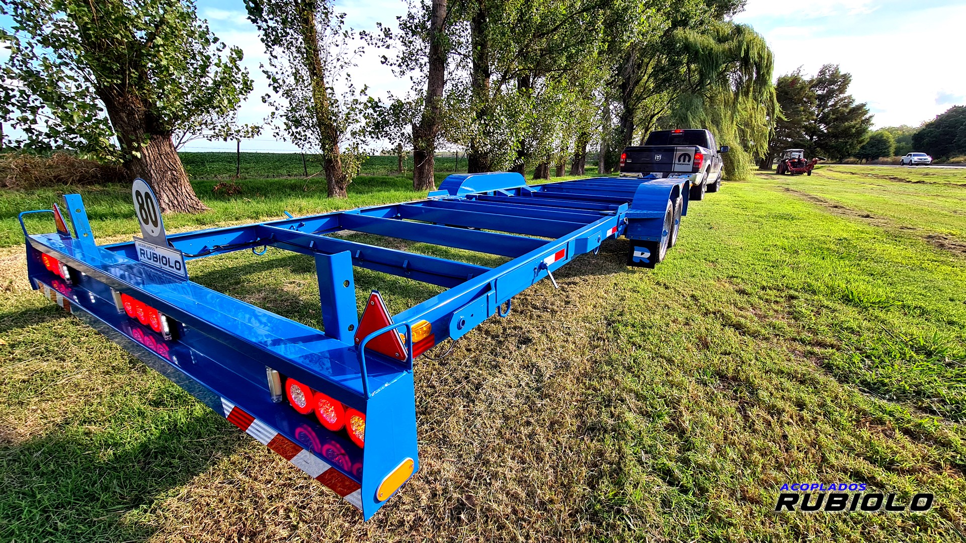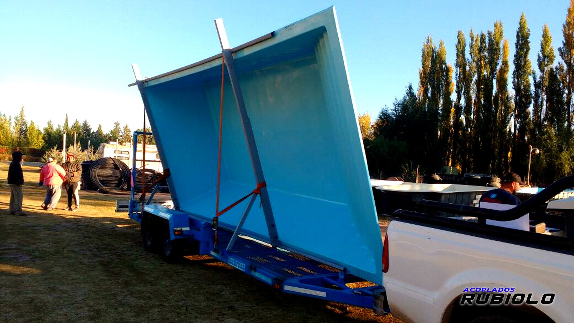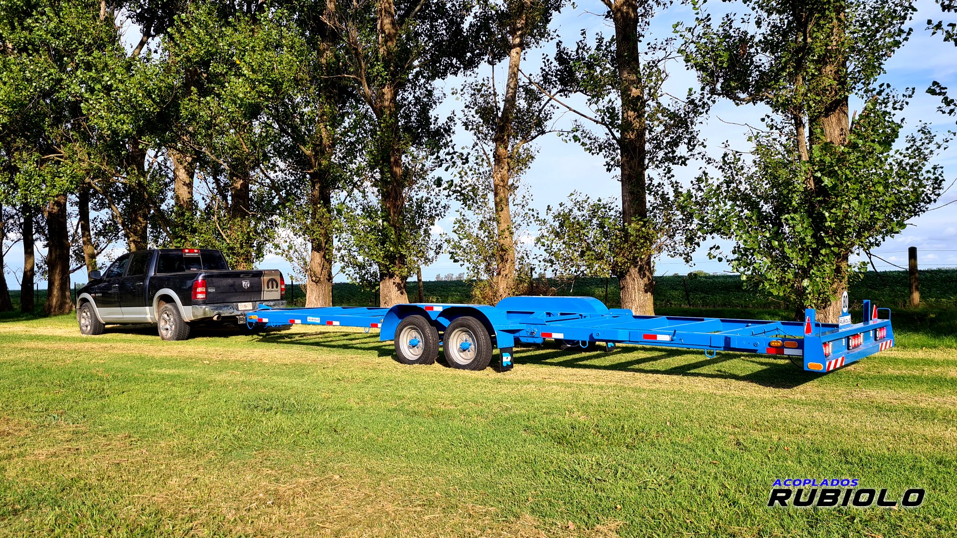 Acoplado especializado con chasis extensible (de 6 a 9 Mts.), dise帽ado para el transporte de piletas y cargas extralargas, con suspensi贸n balanc铆n y freno el茅ctrico inercial.