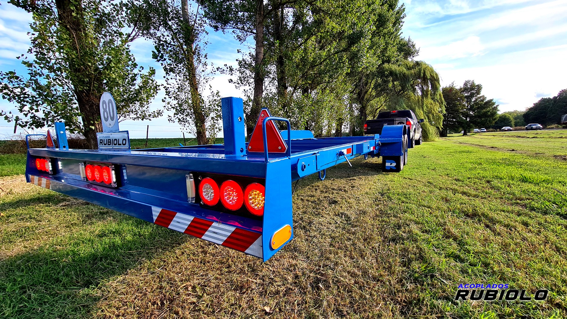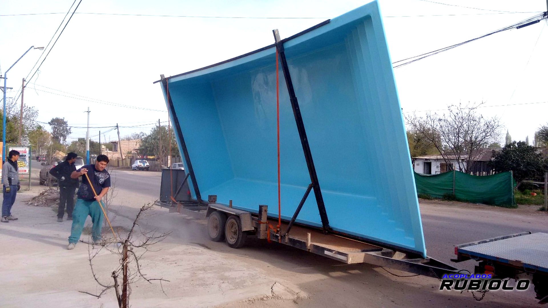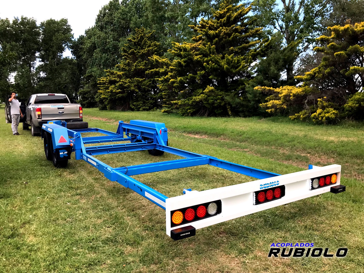 Acoplado especializado con chasis extensible (de 6 a 9 Mts.), dise帽ado para el transporte de piletas y cargas extralargas, con suspensi贸n balanc铆n y freno el茅ctrico inercial.