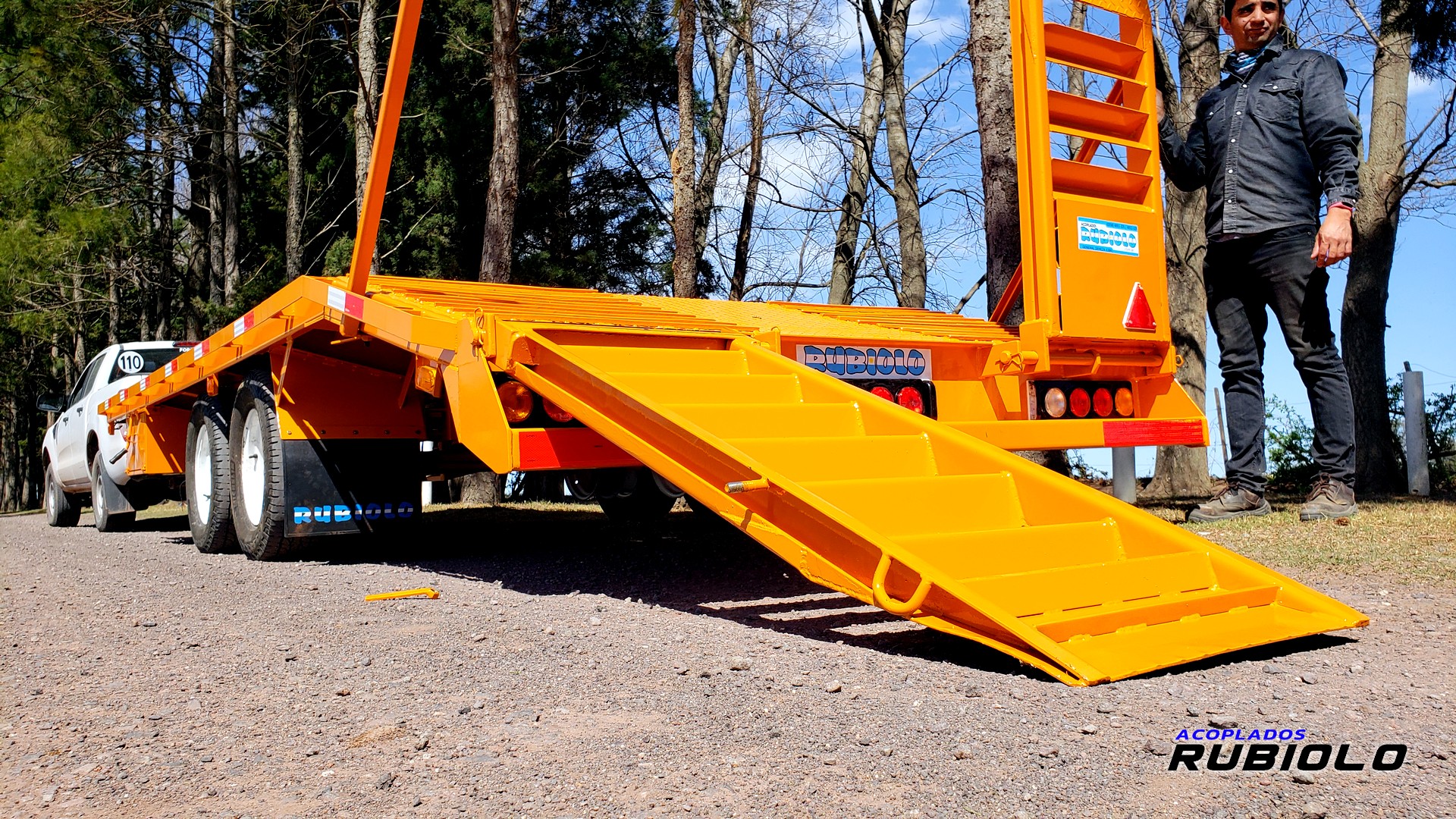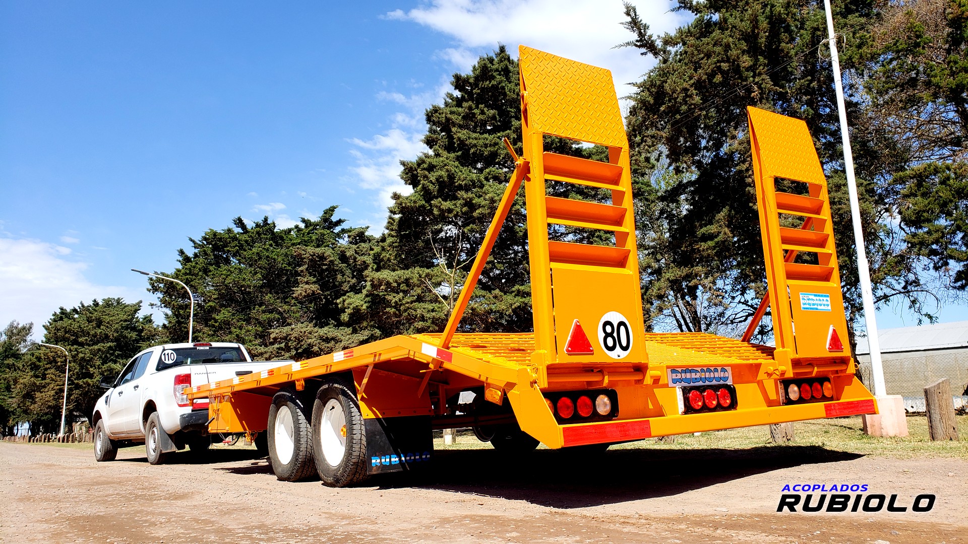Carretón compacto y versátil con sistema balancín, diseñado para el transporte de maquinaria liviana a mediana.