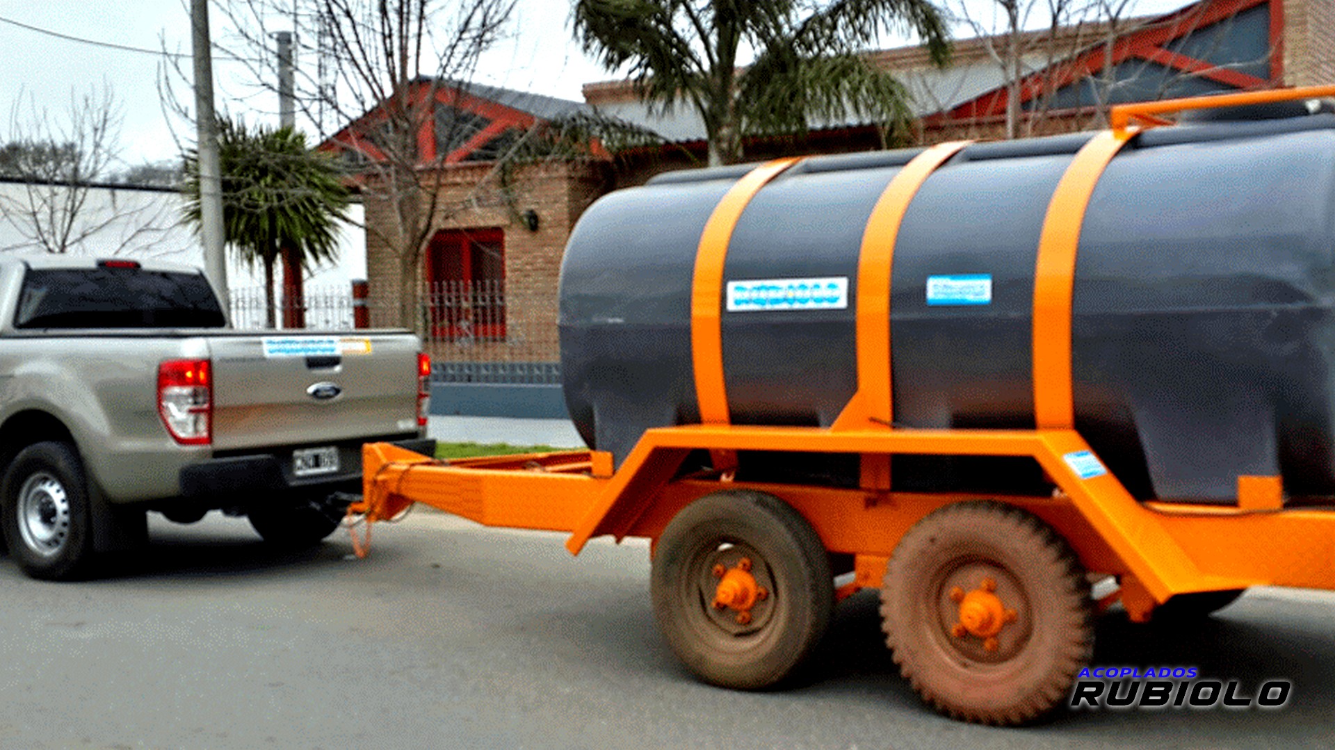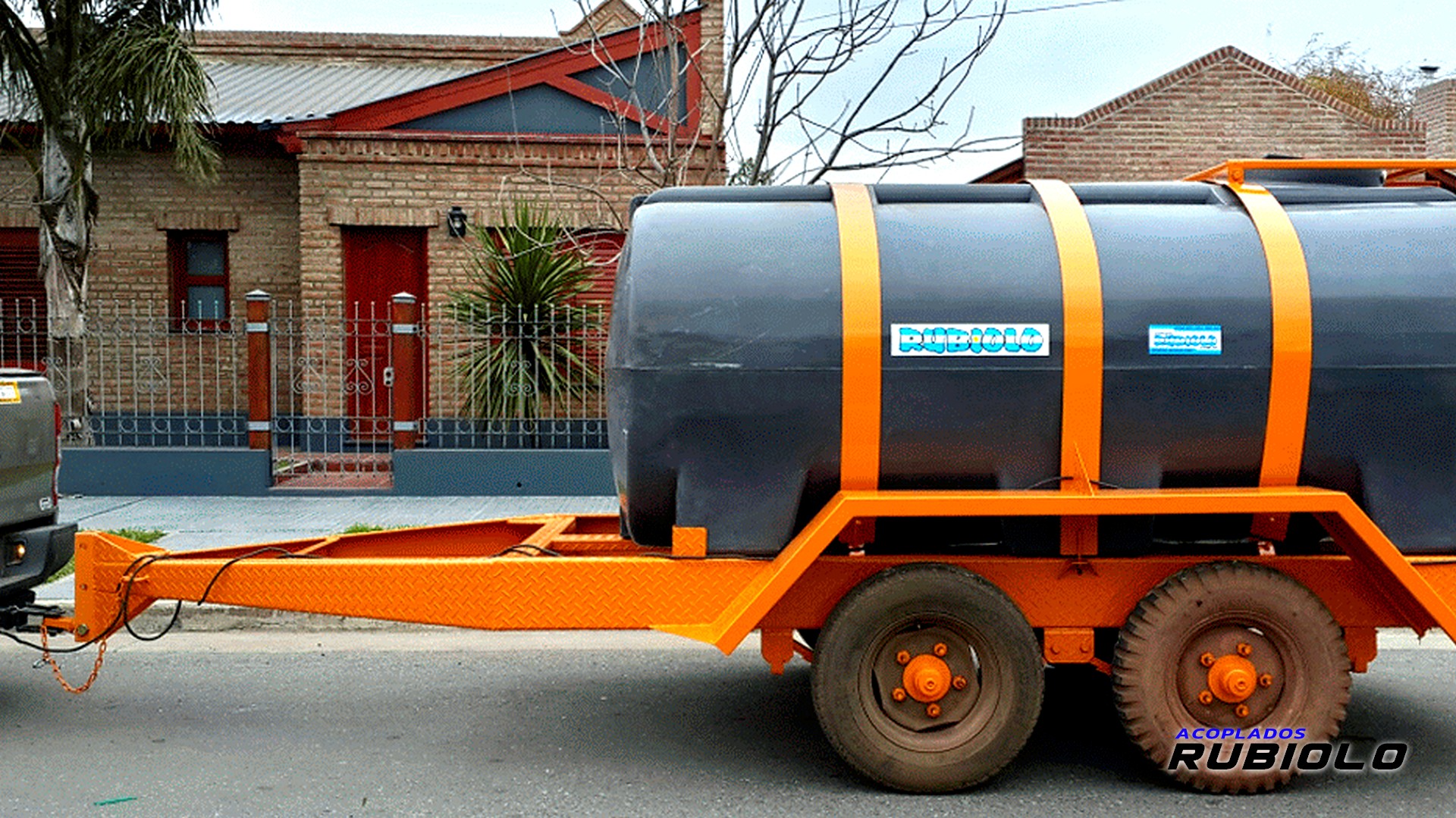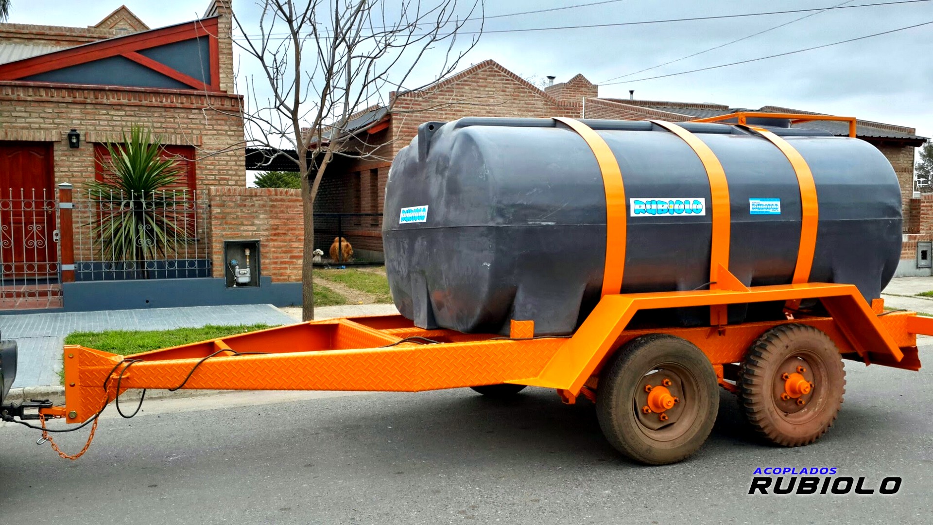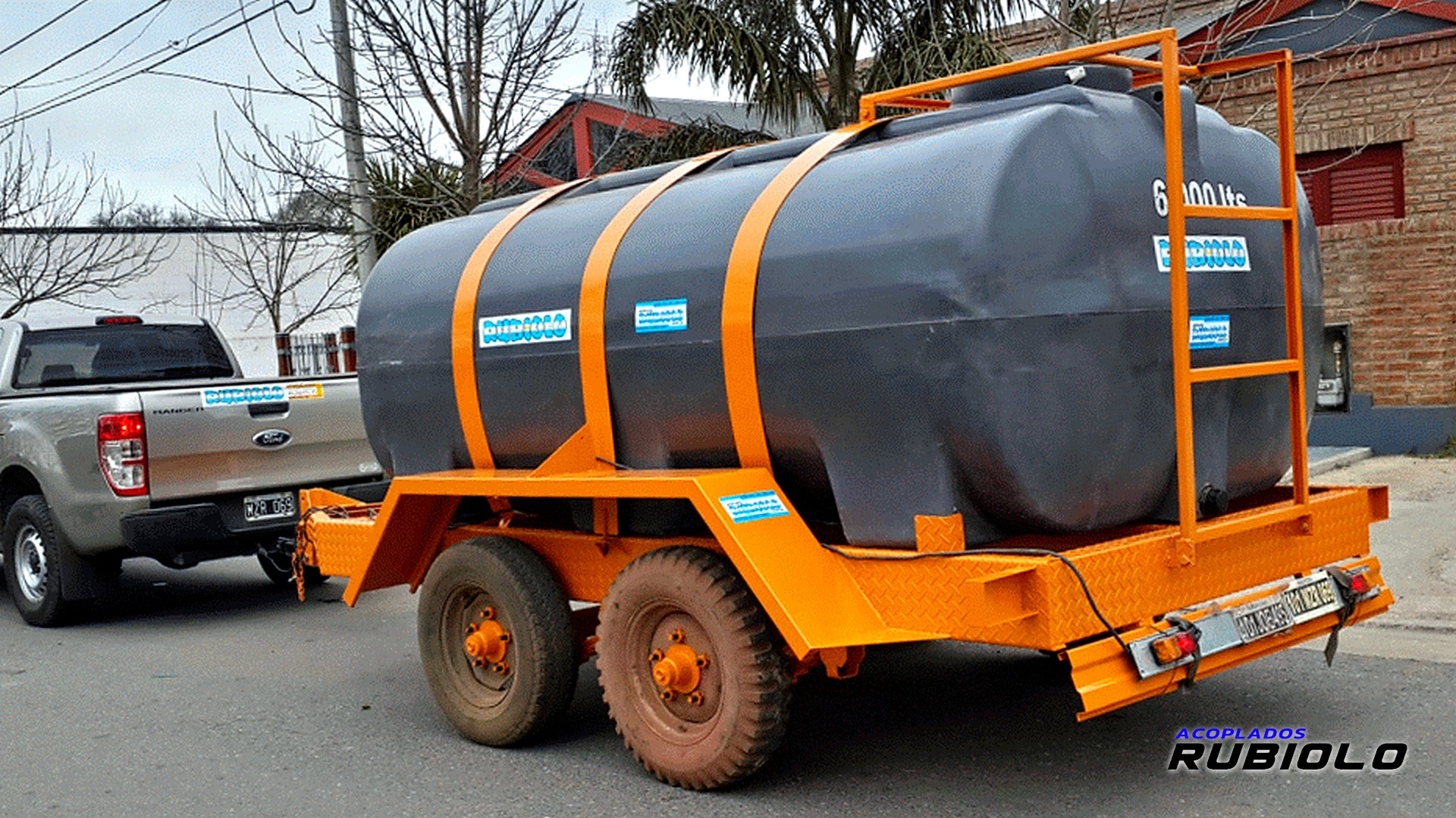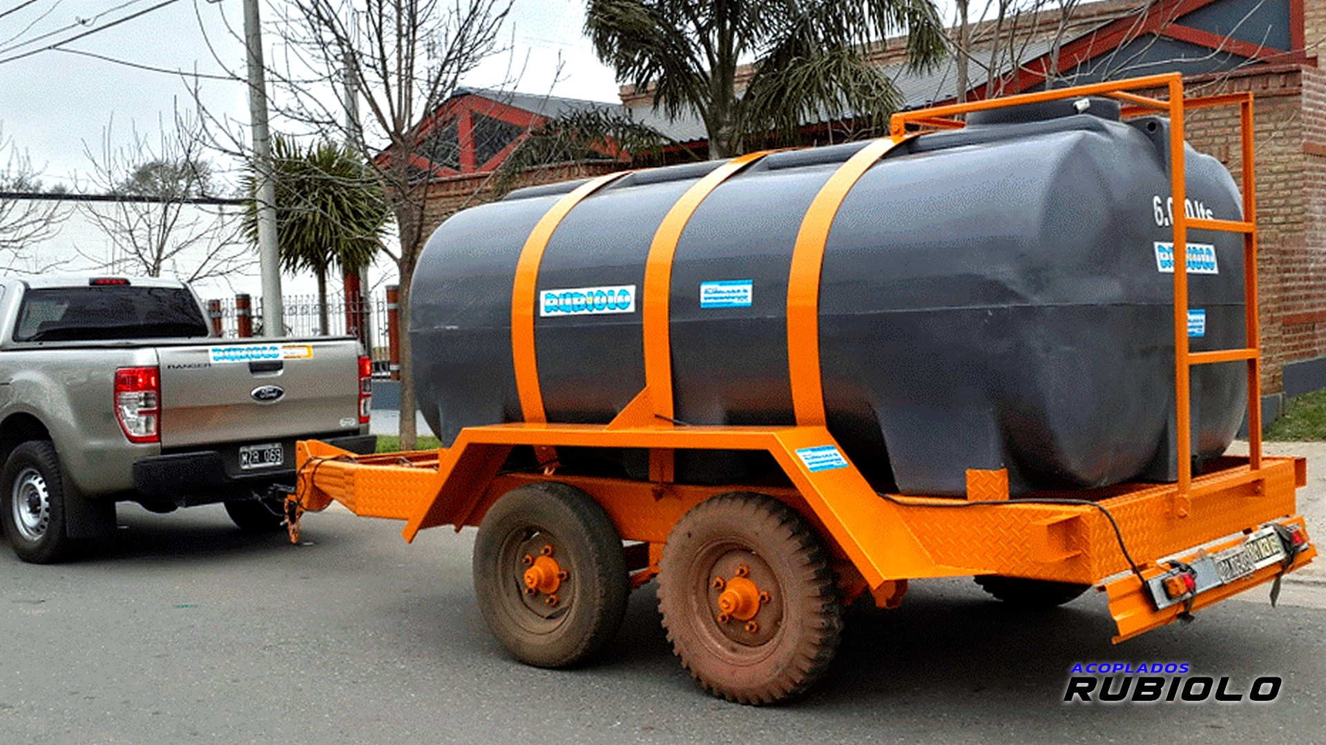 Acoplado de máxima capacidad (6.000 Lts.) con tanque plástico y suspensión Balancín de servicio pesado, diseñado para el transporte estable de grandes volúmenes de líquidos de apoyo agrícola/industrial.