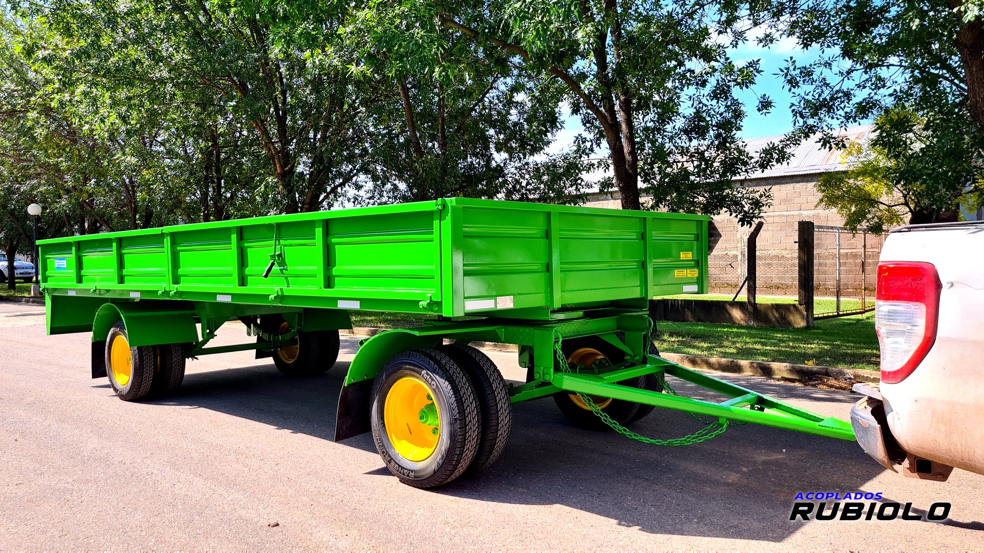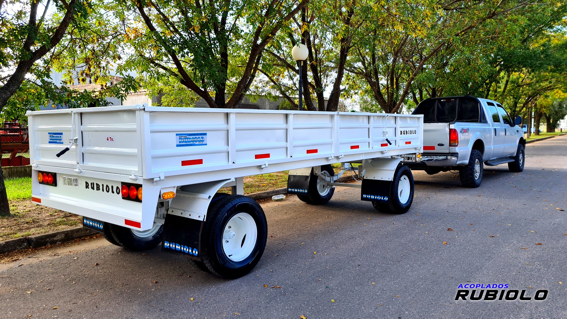 Acoplado Playo de alta capacidad (3.5 Tn. real) y 4 Mts. de largo, Homologado para ruta (O2), equipado con sistema Bantrén y doble eje con freno eléctrico, cumpliendo con todas las normativas viales.