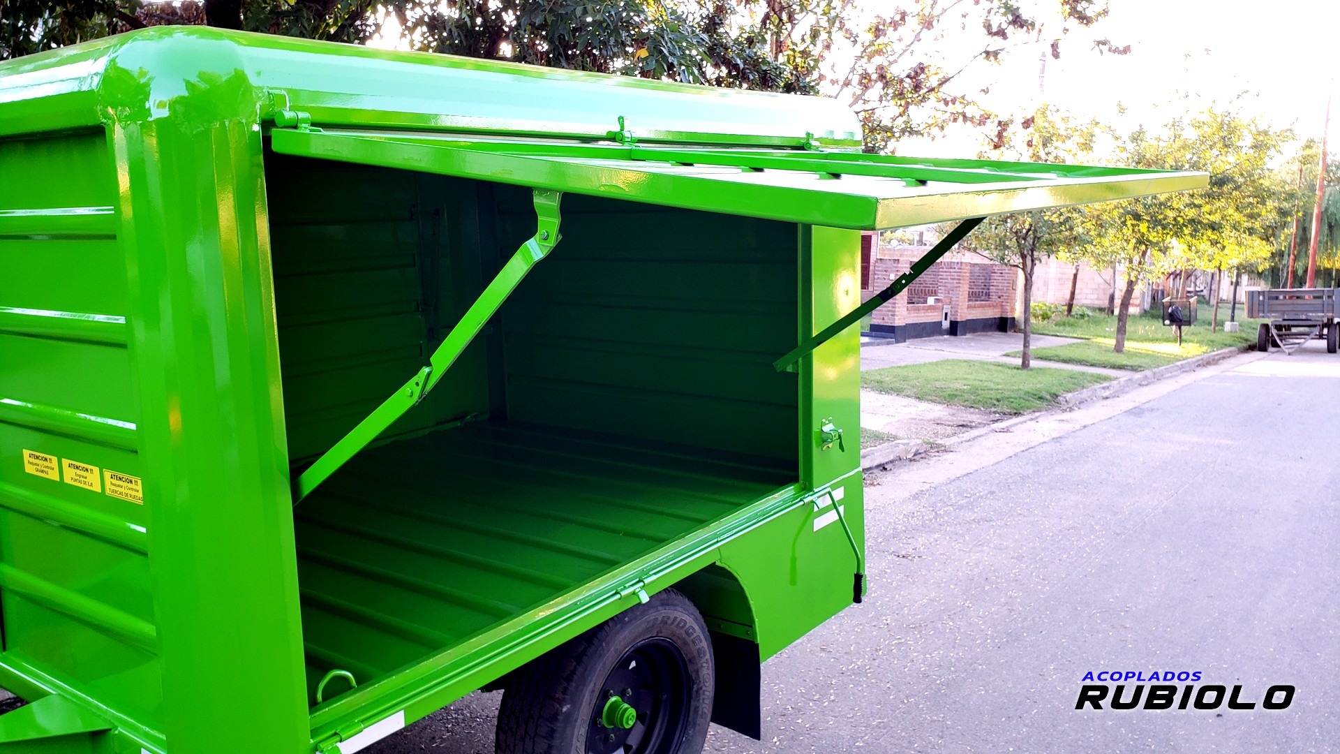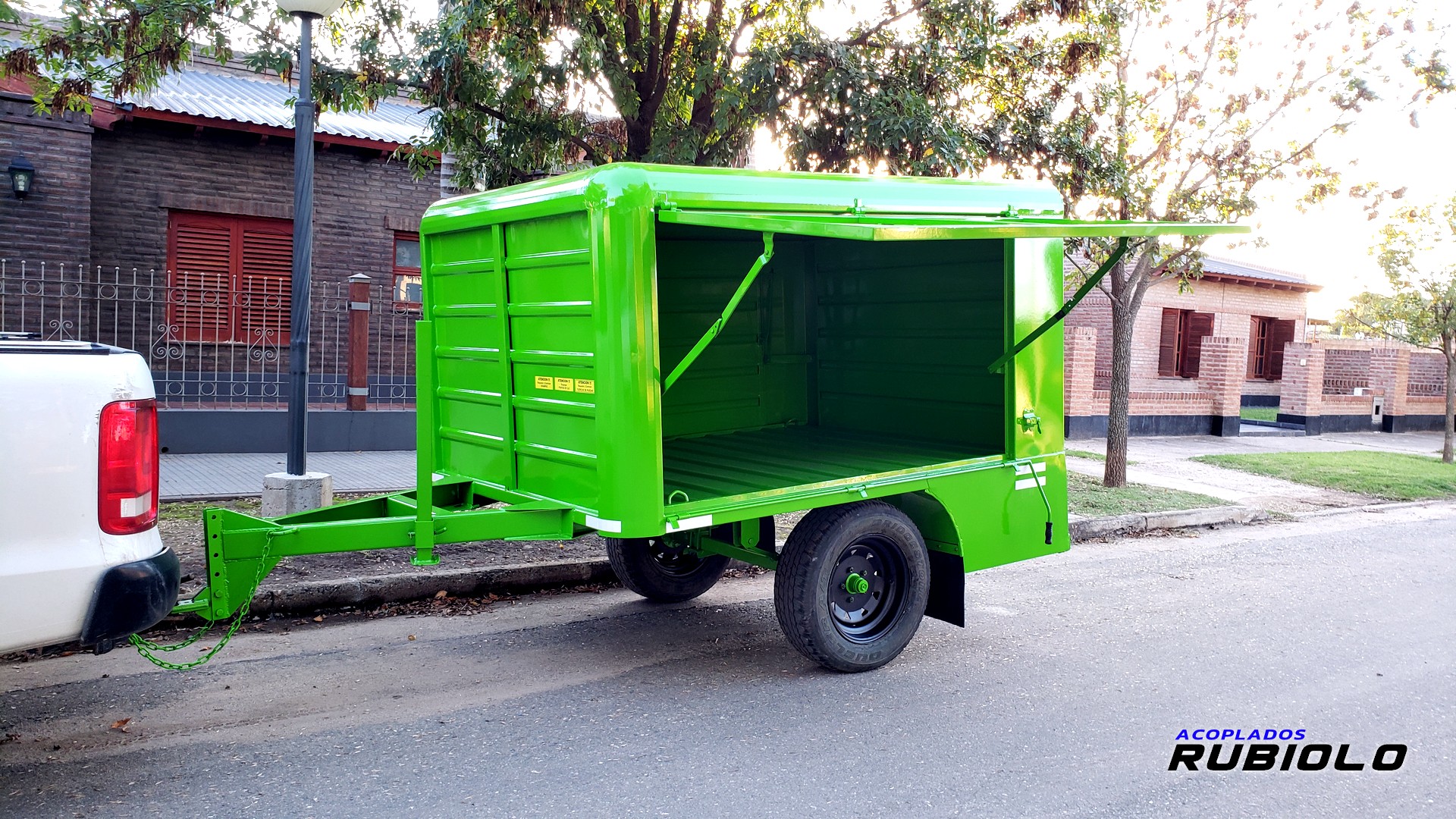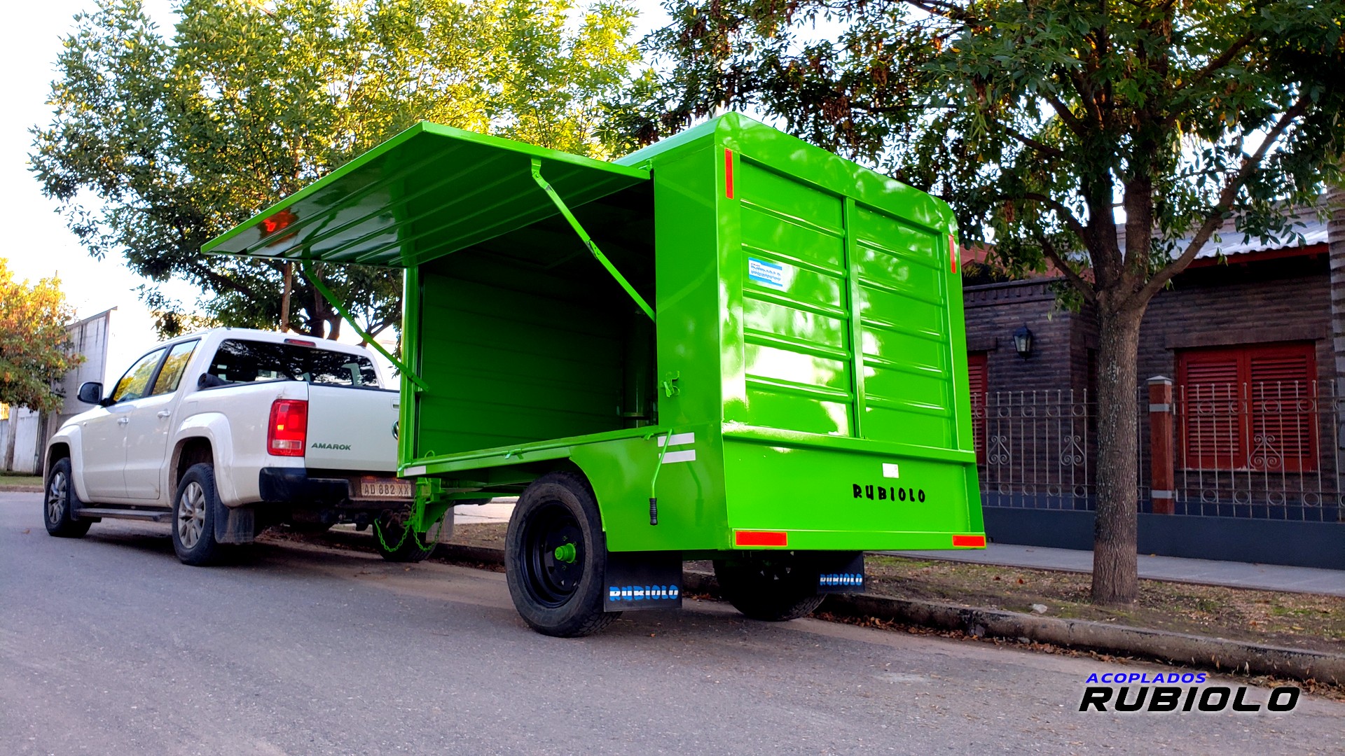 Acoplado carrozado y compacto de eje simple (batán), diseñado como un taller móvil con capacidad de 1000 Kg. (1 Tn.), con ruedas debajo de la estructura para maximizar el ancho interno y enganche para bocha.