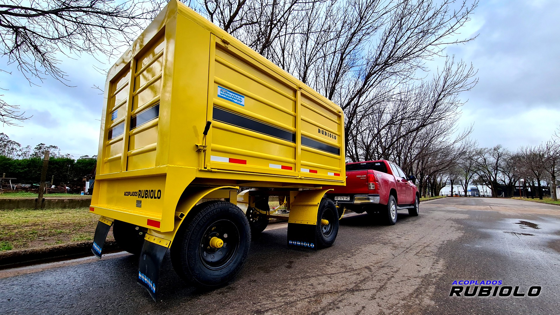 Acoplado carrozado de gran capacidad (3.5 Tn.) con sistema Bantrén, diseñado como un taller móvil amplio con 3 Mts. de largo y puertas laterales que funcionan como alero.
