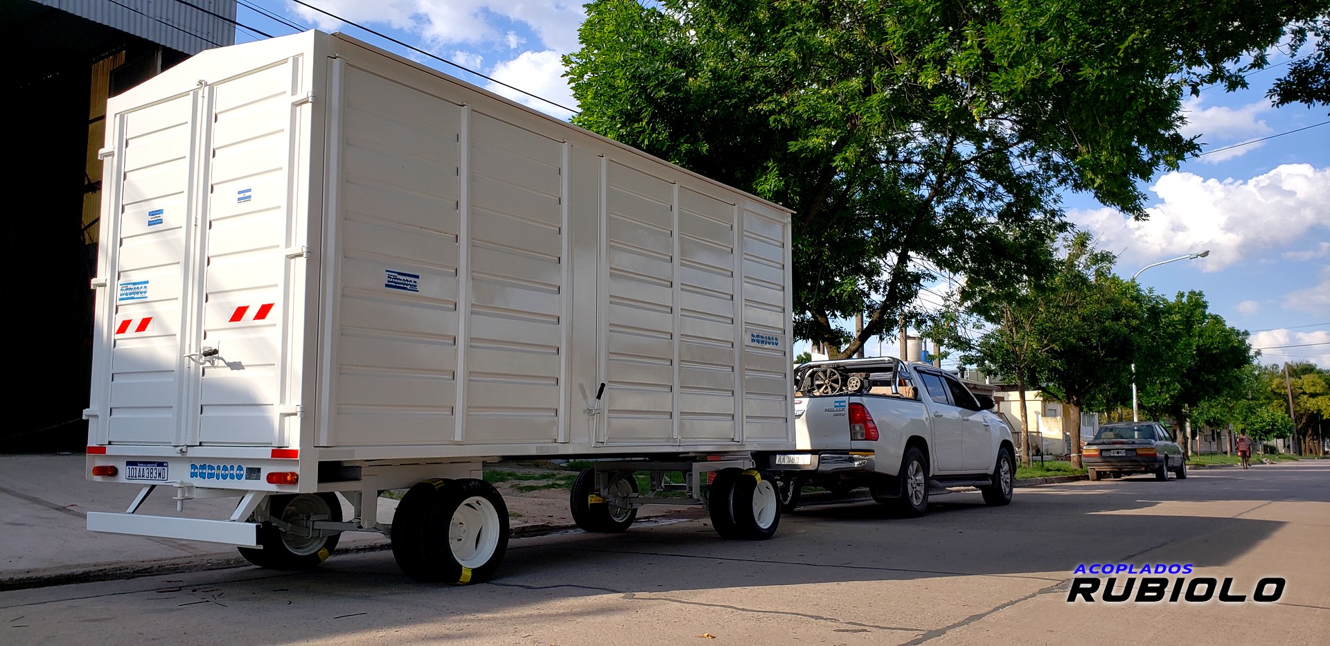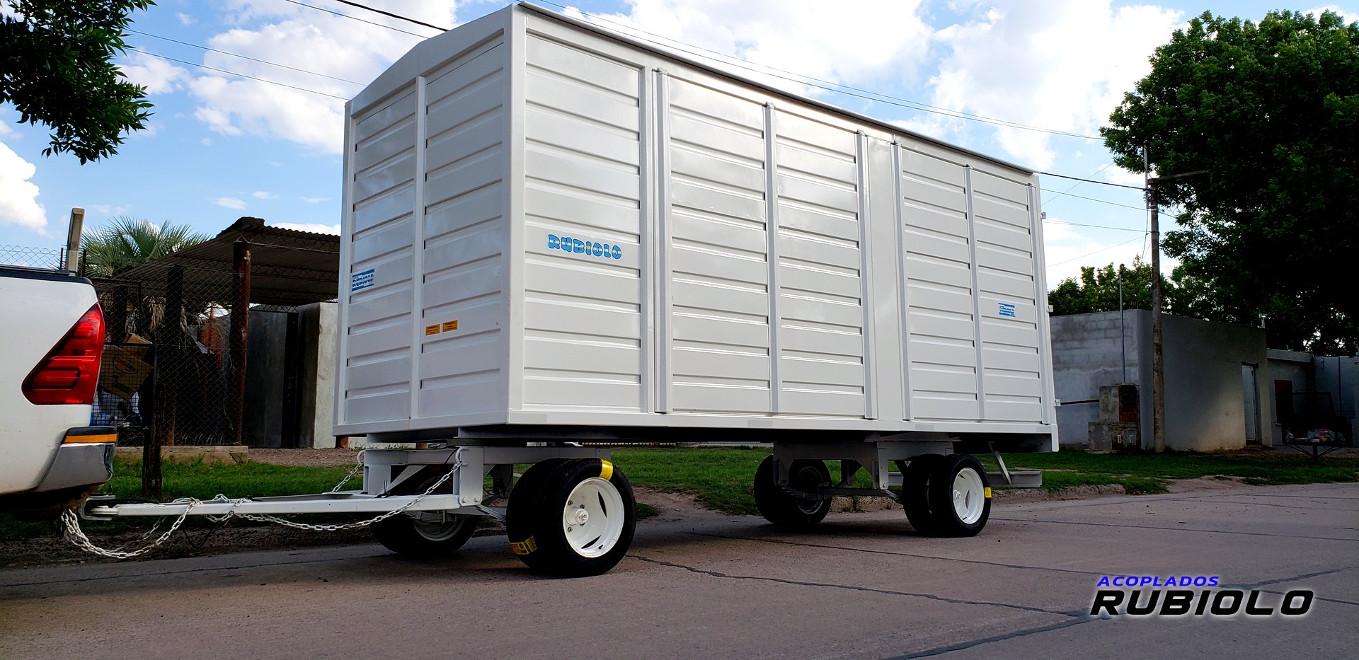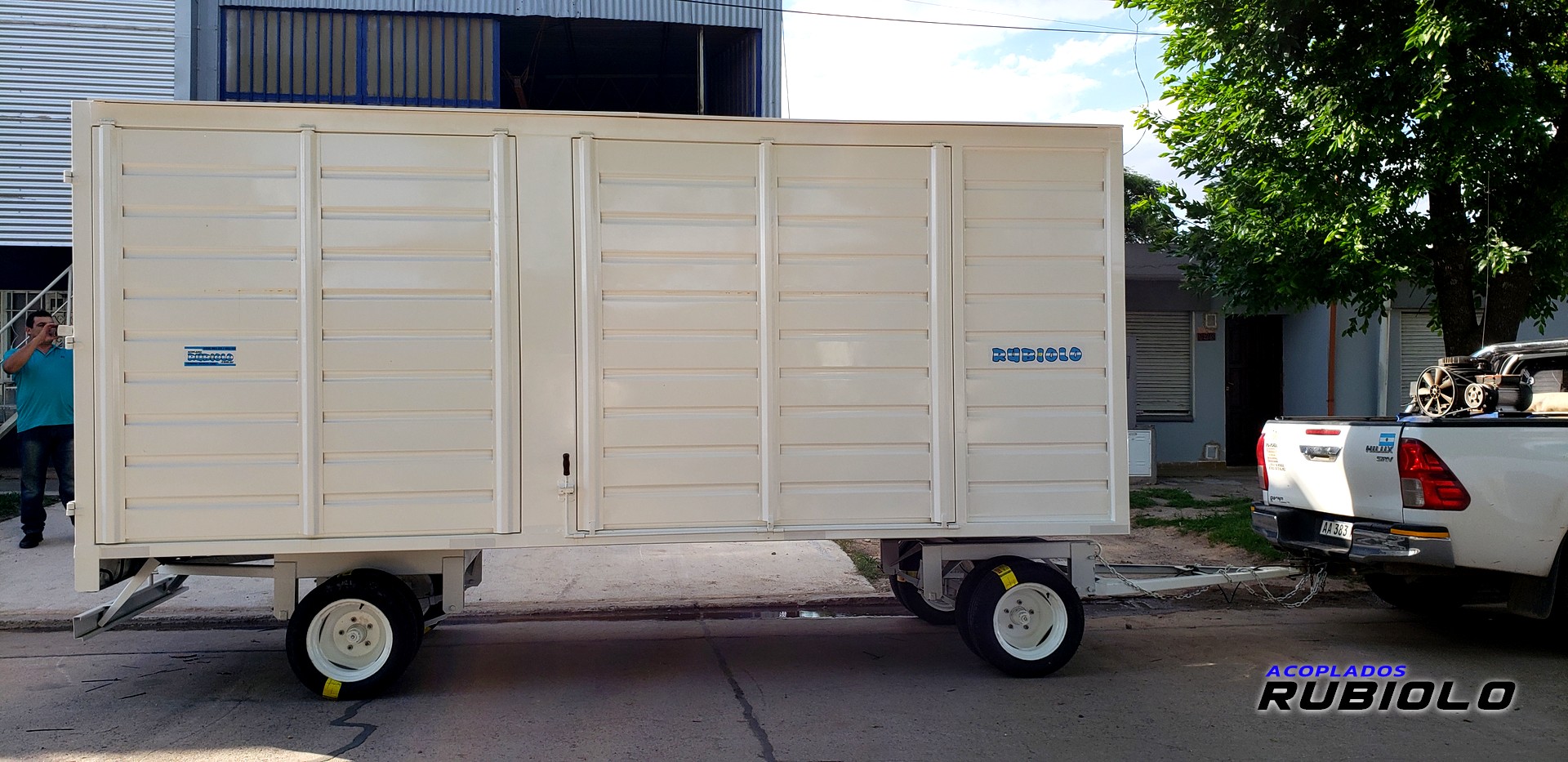 Acoplado carrozado de 5 Mts. de longitud con sistema Bantrén, diseñado con gran altura interior (2.10 Mts.) para trabajar cómodamente de pie, ideal para funcionar como un taller o unidad móvil espaciosa.