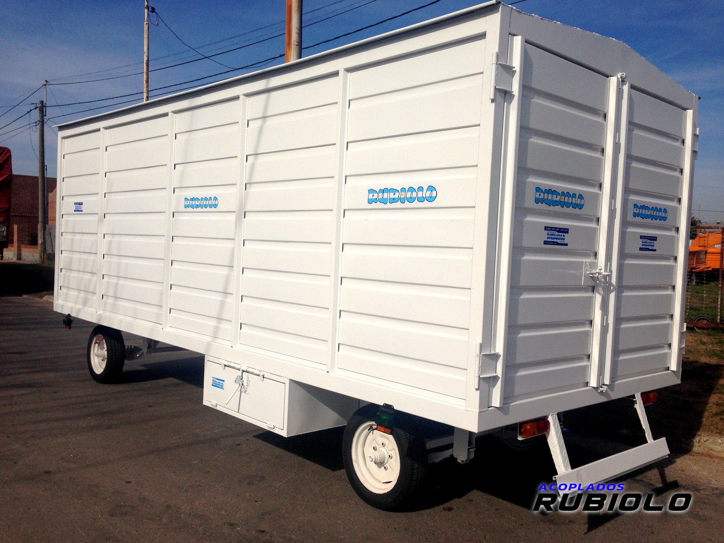 Acoplado carrozado de 6 Mts. de longitud con sistema Bantrén, diseñado con gran altura interior (2.10 Mts.) y doble acceso lateral para funcionar como un taller o unidad móvil de grandes dimensiones.