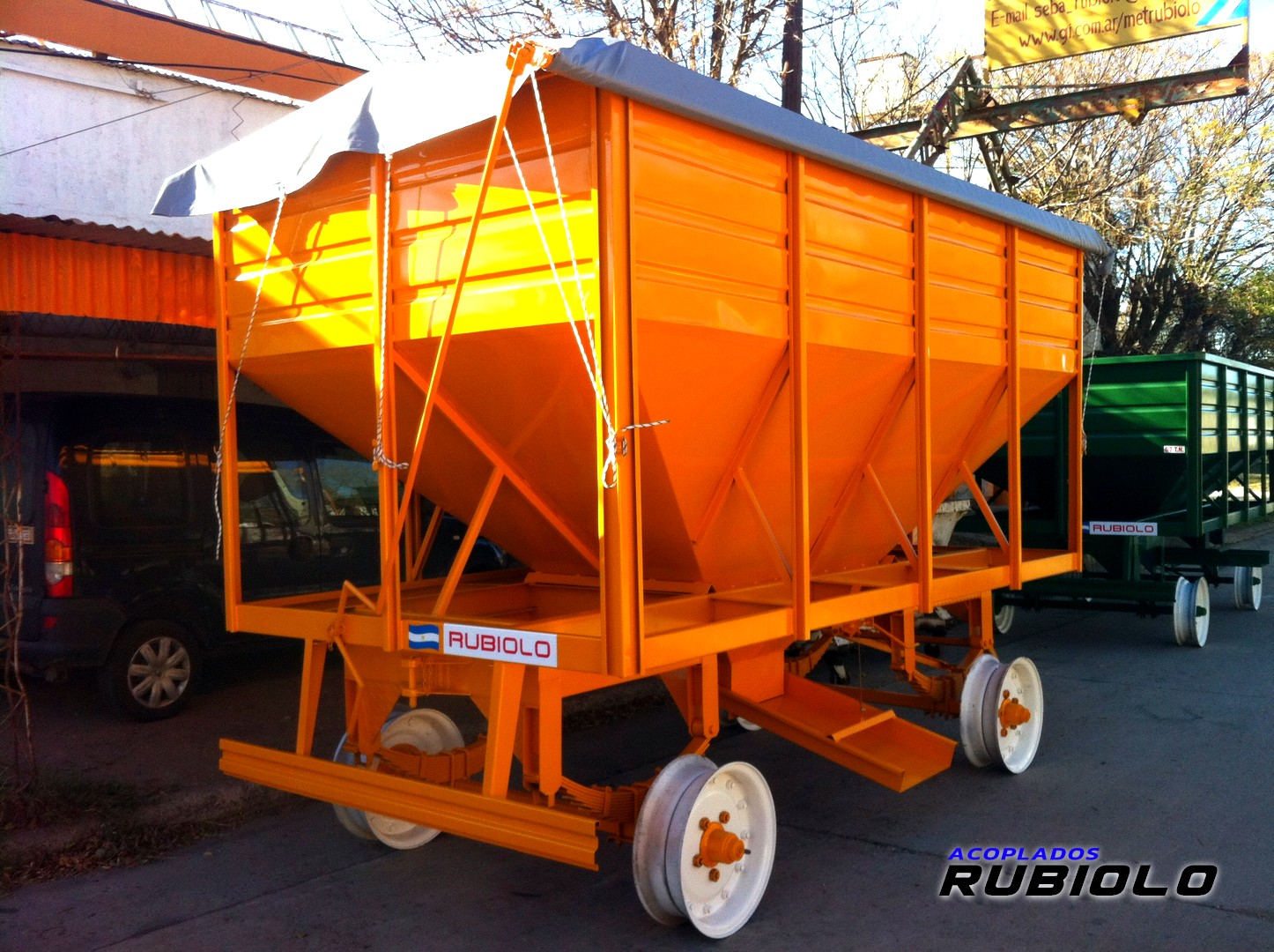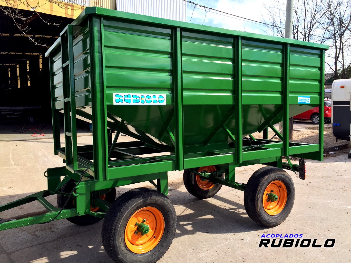 Tolva acoplado de gran capacidad, ideal para el transporte y dosificación de semillas. Cuenta con una capacidad de 5 Toneladas (7 $text{m}^3$), sistema Bantrén reforzado y suspensión robusta para uso intensivo.