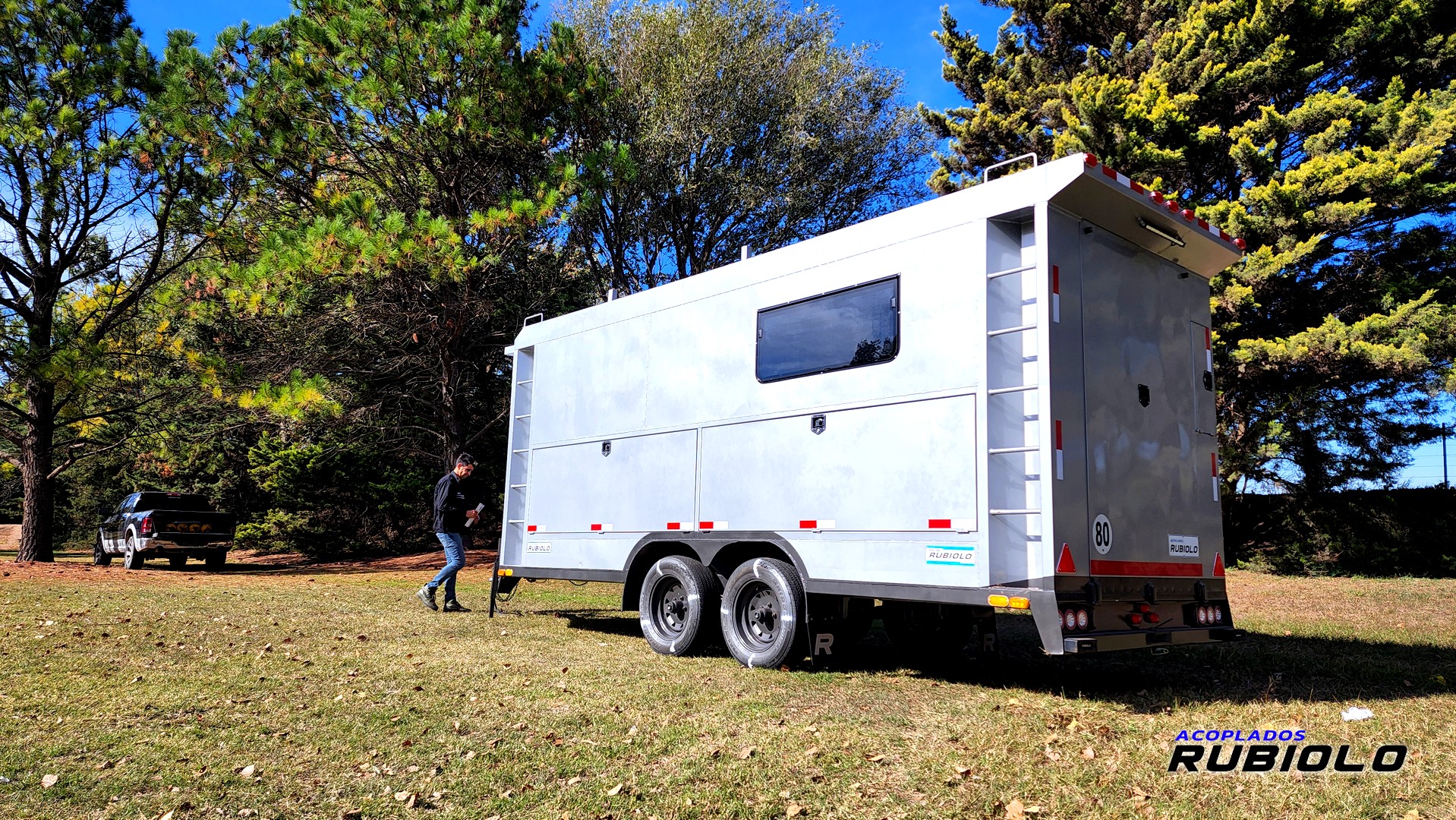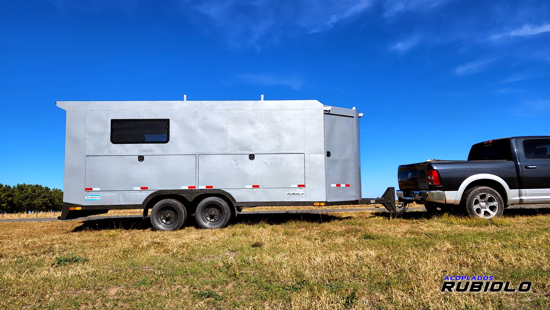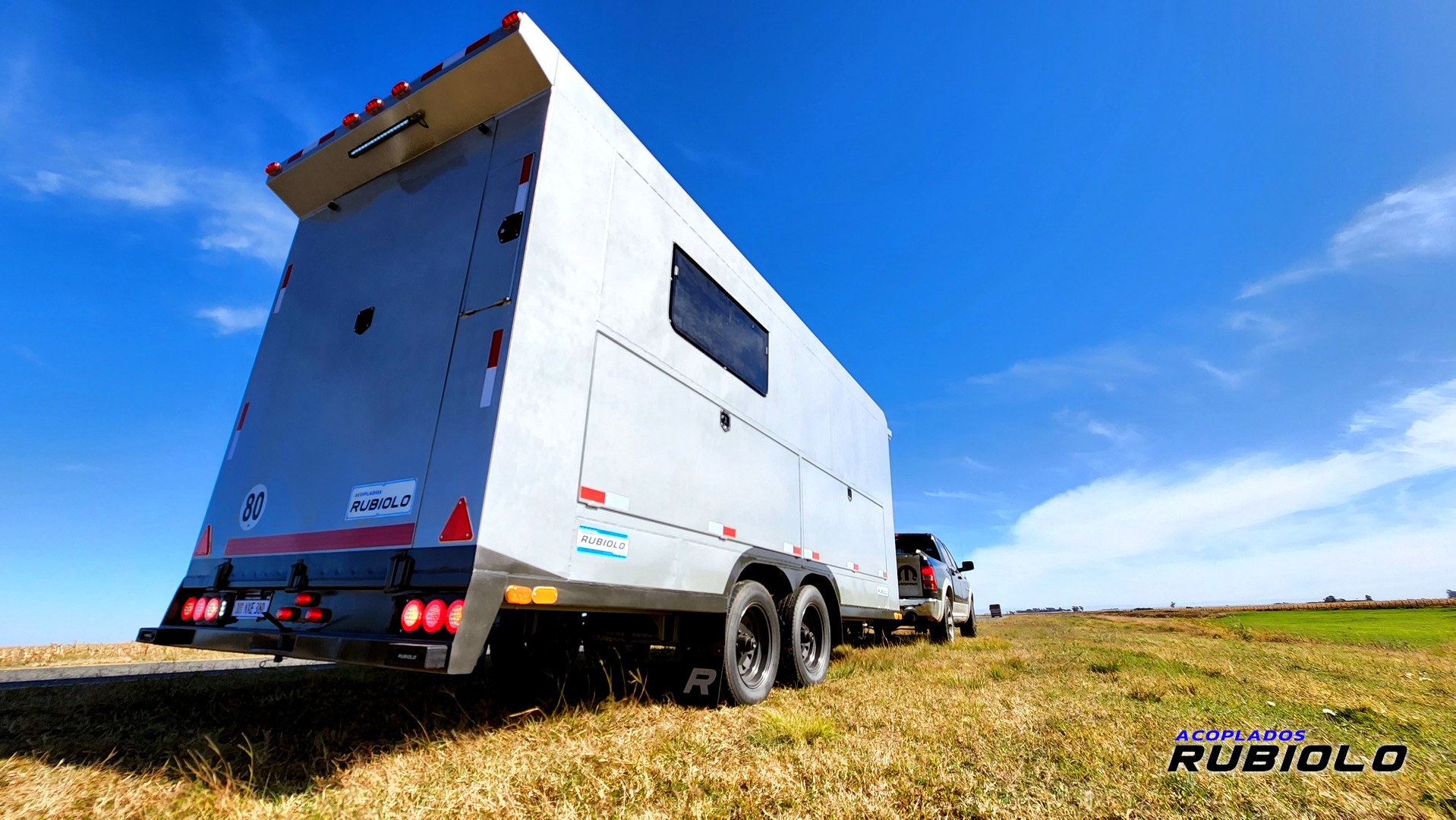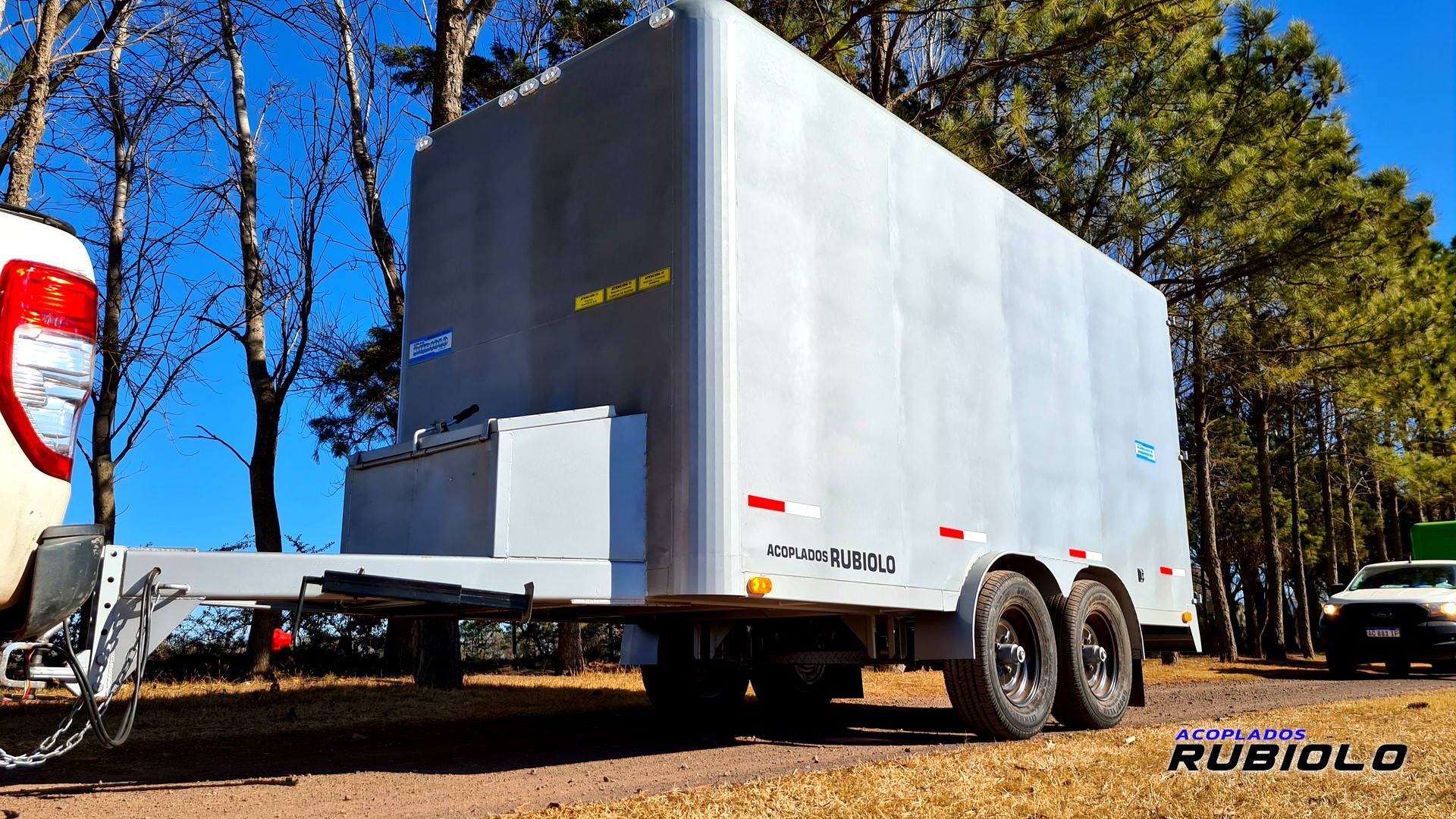 Acoplado carrozado Balancín de doble eje, Homologado para ruta (O2), con diseño «Tipo Americano» y capacidad de 3.5 Tn. de carga real. Incluye freno eléctrico inercial y está preparado para un uso vial seguro y legal.