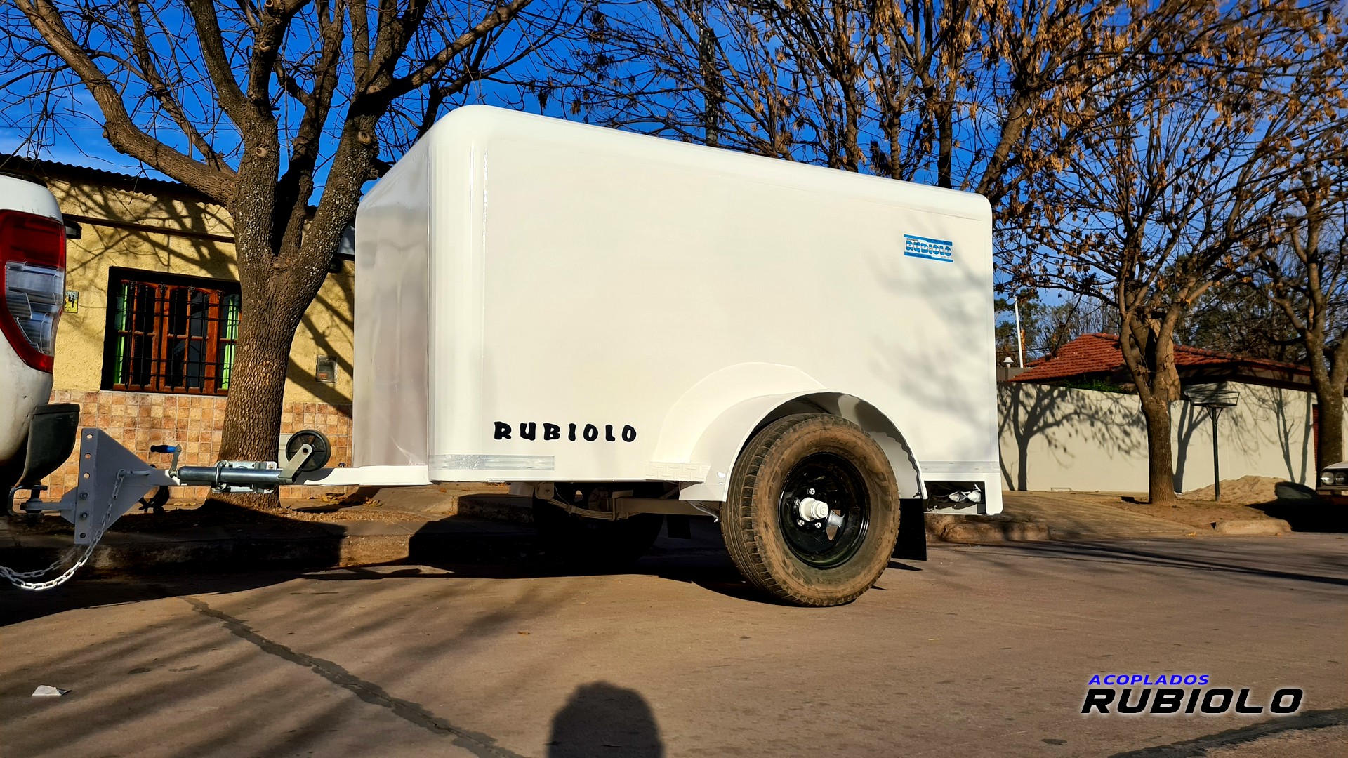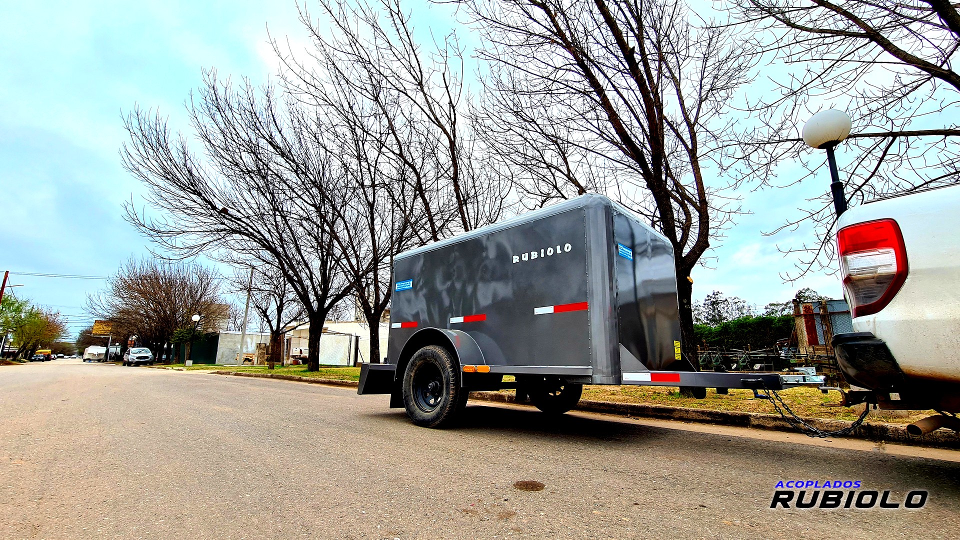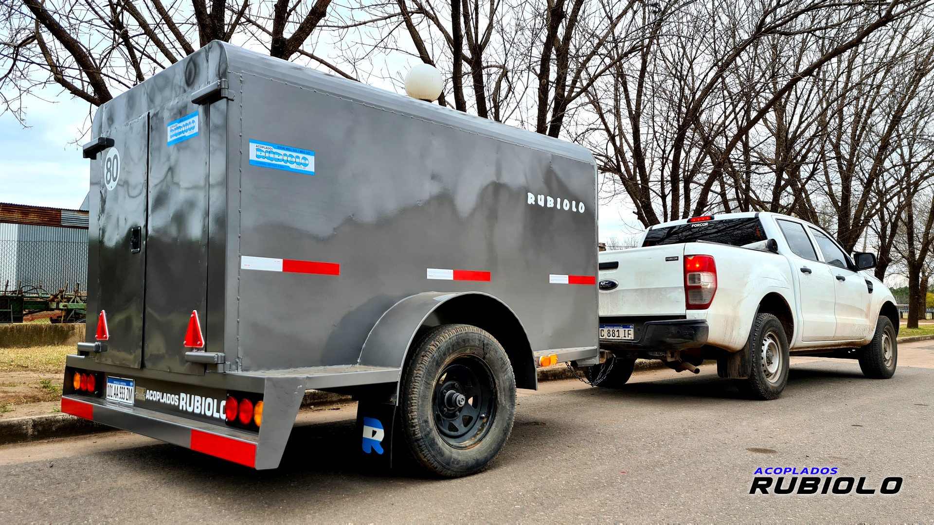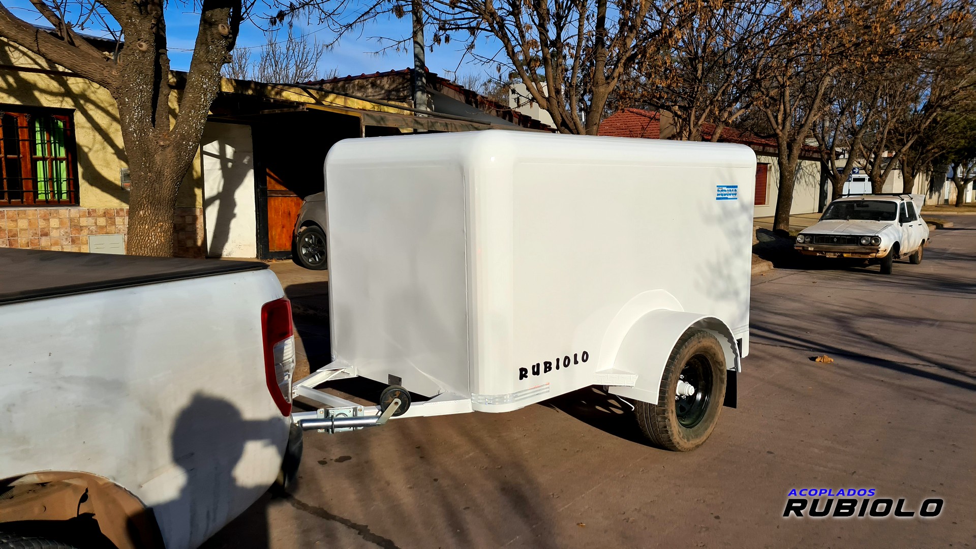 Acoplado carrozado y cerrado de diseño «Tipo Americano» con estructura curva, eje simple y capacidad de 800 Kg. Ideal para el transporte seguro de herramientas, equipos sensibles o motos/cuatriciclos.