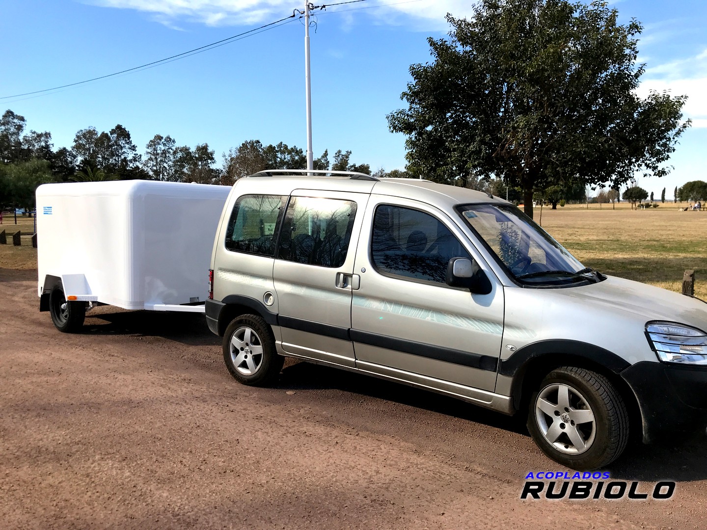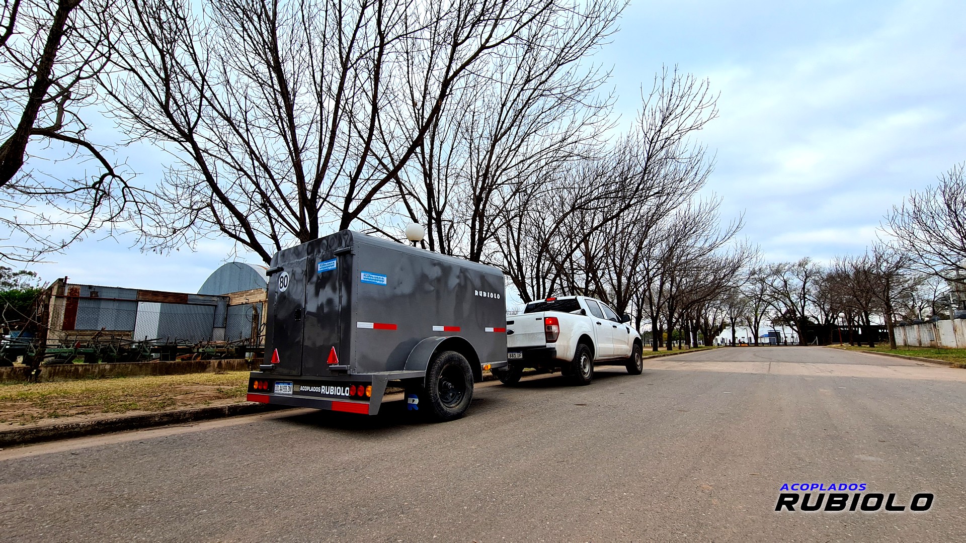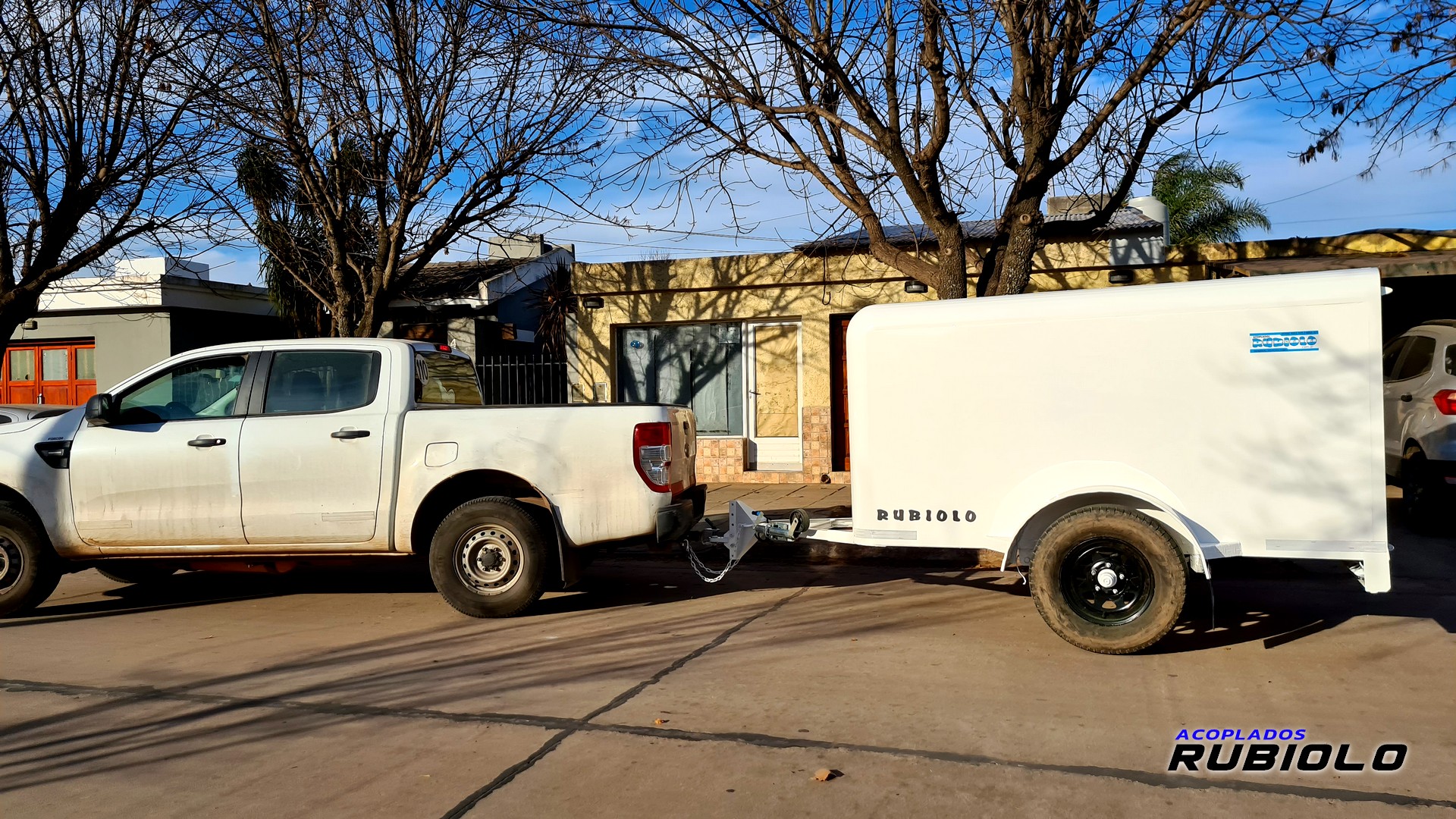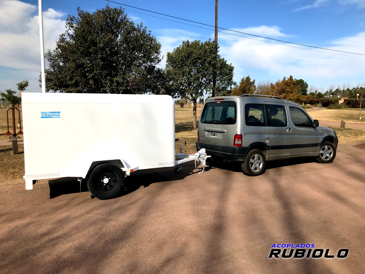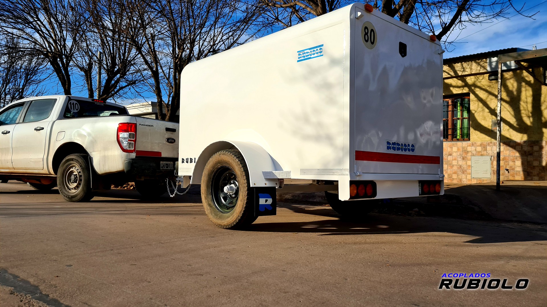 Acoplado carrozado y cerrado de diseño «Tipo Americano» con estructura curva, eje simple y capacidad de 800 Kg. Ideal para el transporte seguro de herramientas, equipos sensibles o motos/cuatriciclos.