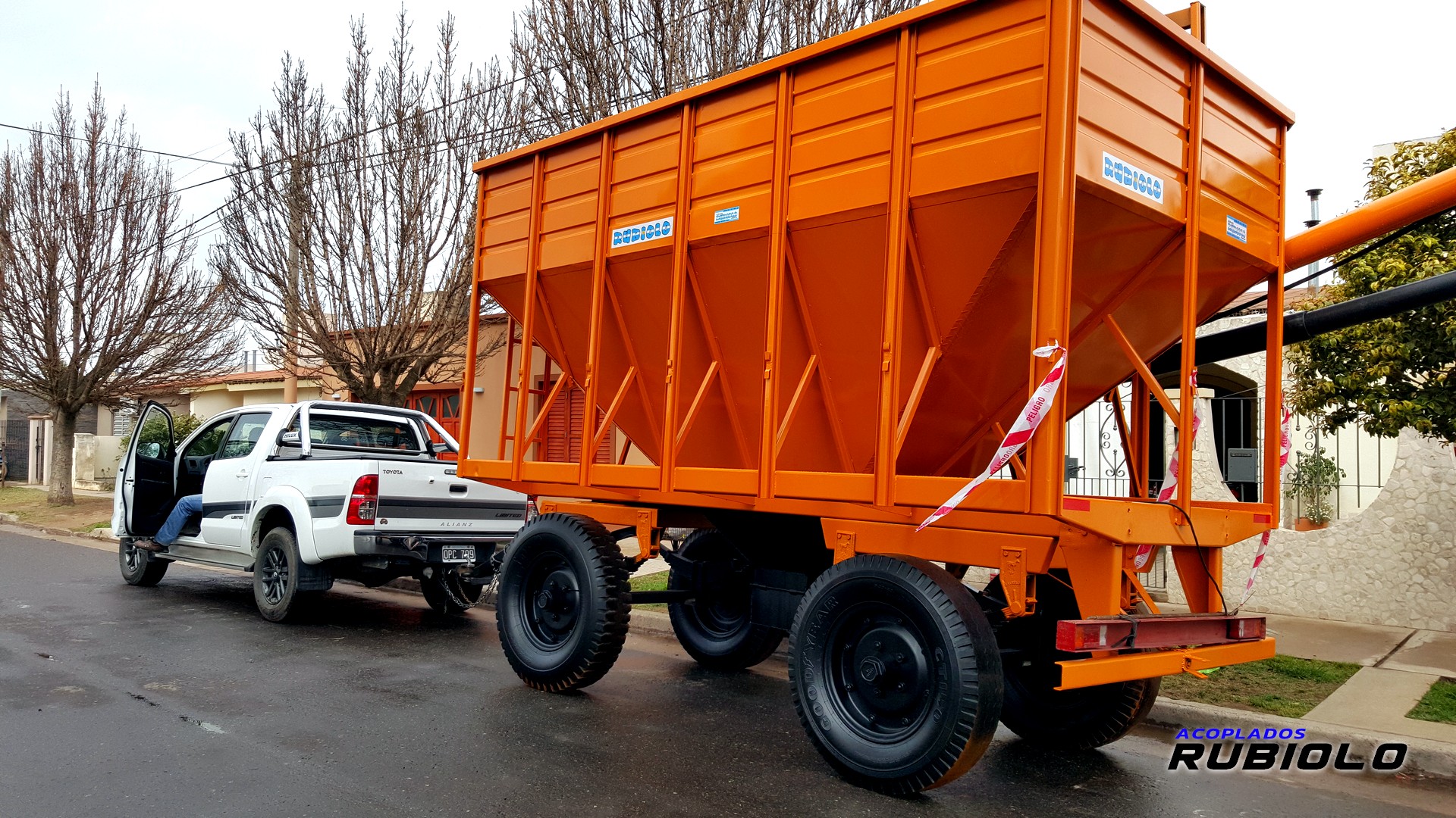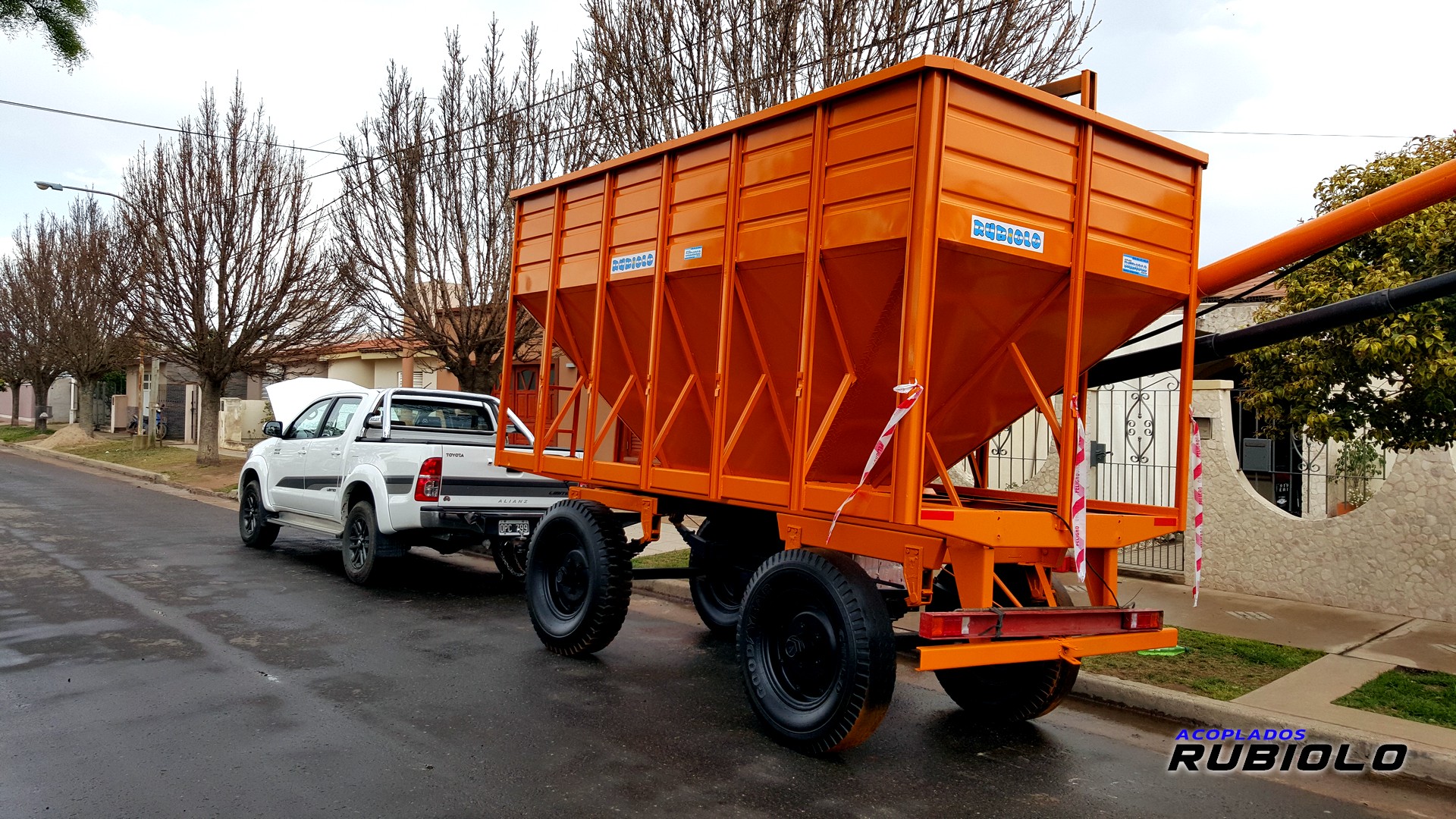 Caja de tolva compacta y robusta, dise帽ada para ser instalada sobre un chasis existente, optimizando la capacidad de transporte de semilla.