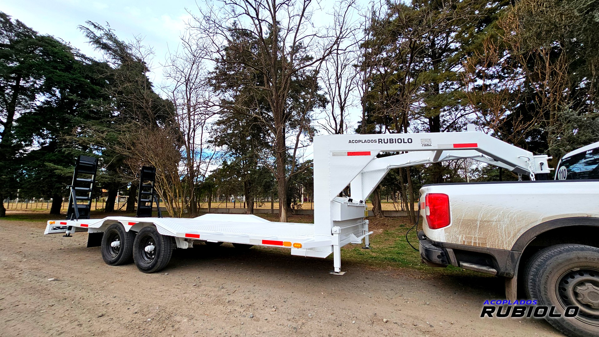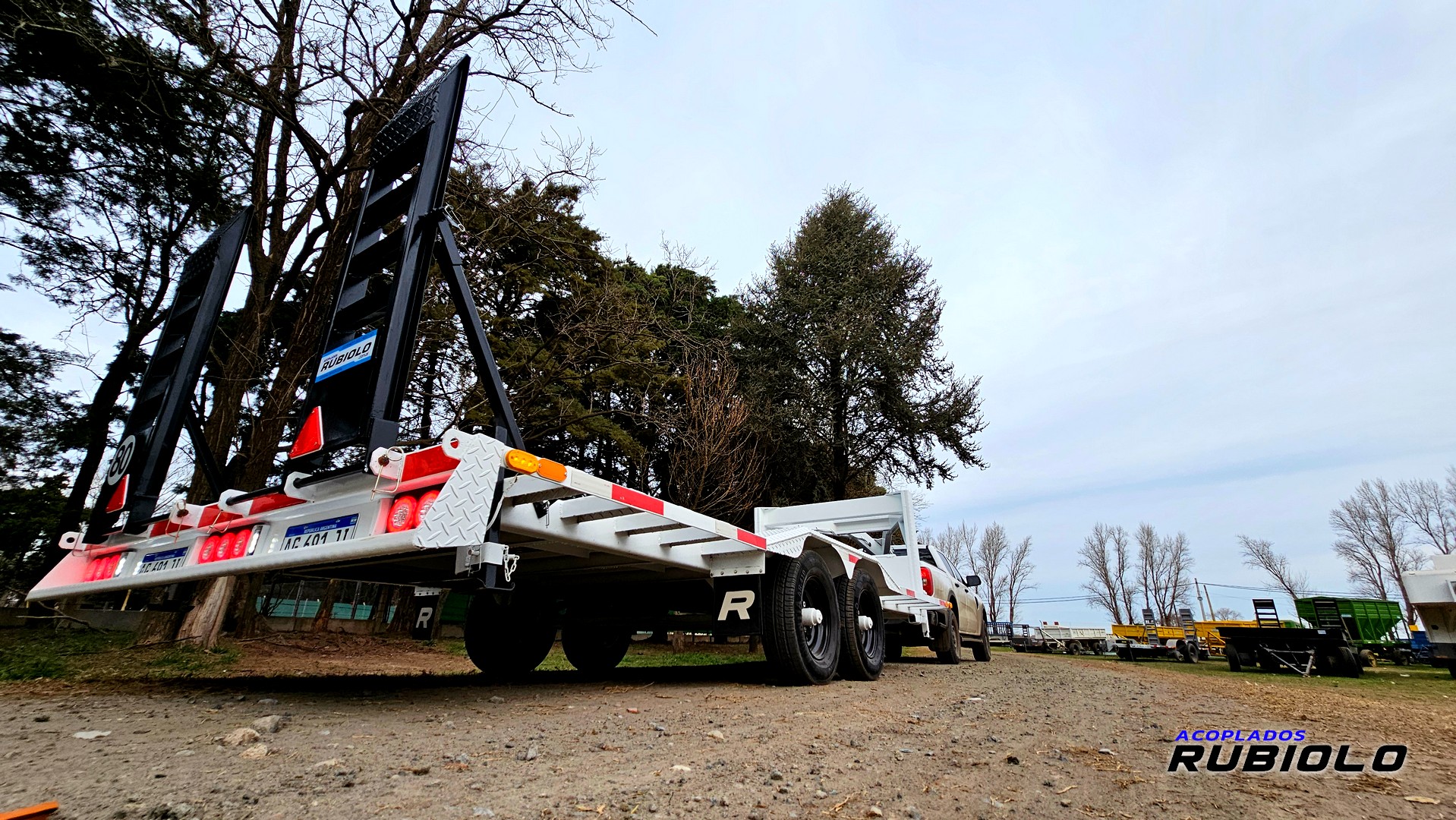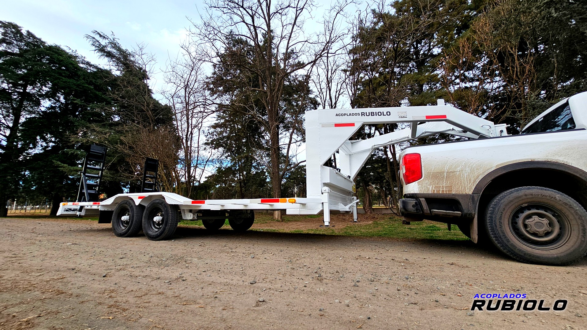 Semirremolque de diseño «Carga Todo» con suspensión balancín y gran capacidad, ideal para el transporte de maquinaria pesada y carga voluminosa.