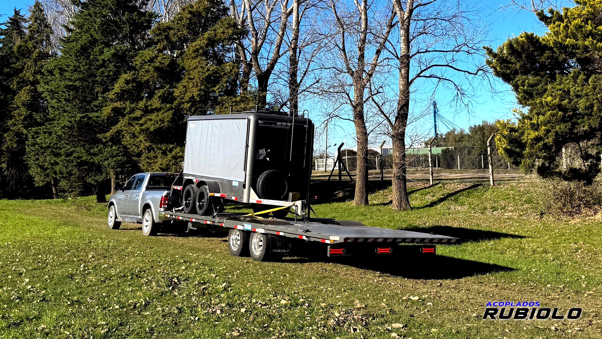 - Iluminaci贸n: KIT de luces LED bivoltaje (12 y 24) reglamentarias completas (Posici贸n, giros, stop, retroceso, laterales e ilumina patentes) con cable normalizado de 7 x 1,5 mm y ficha macho de acople.