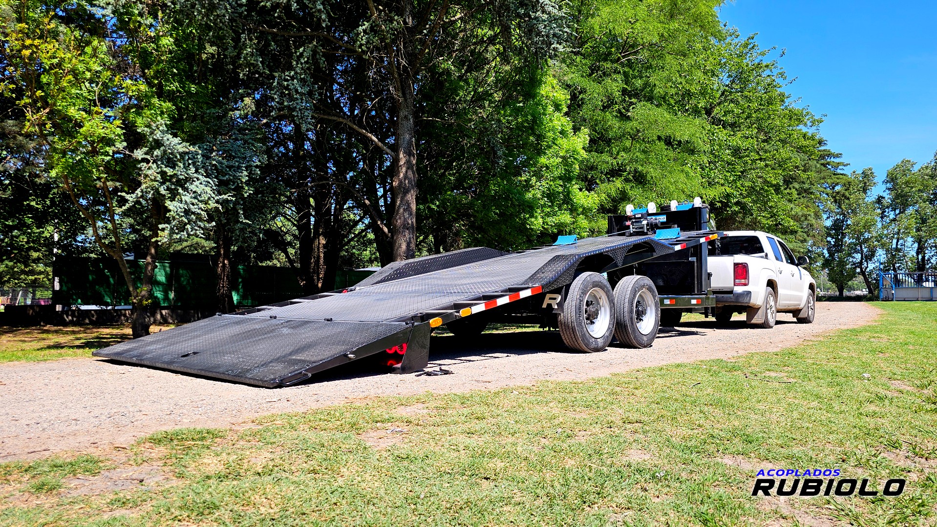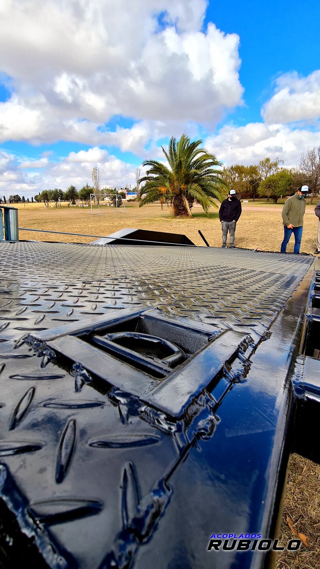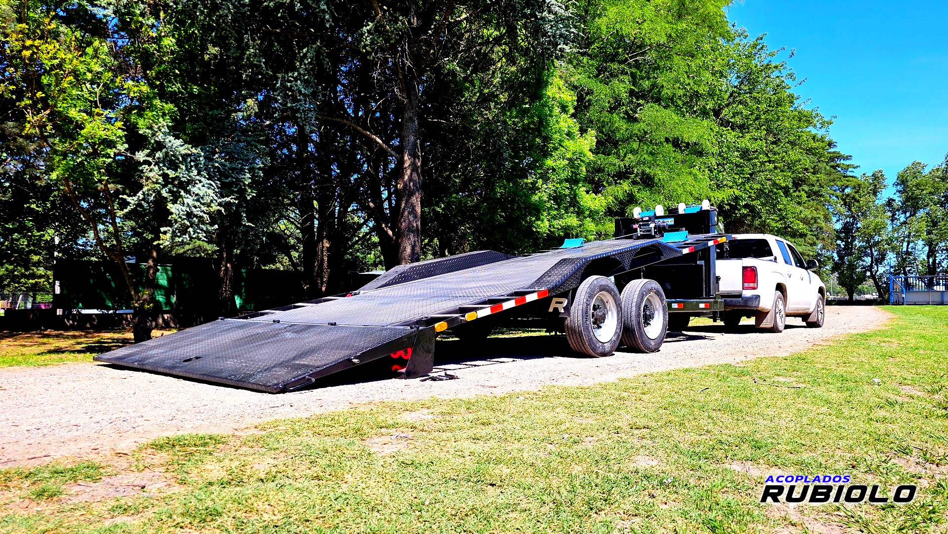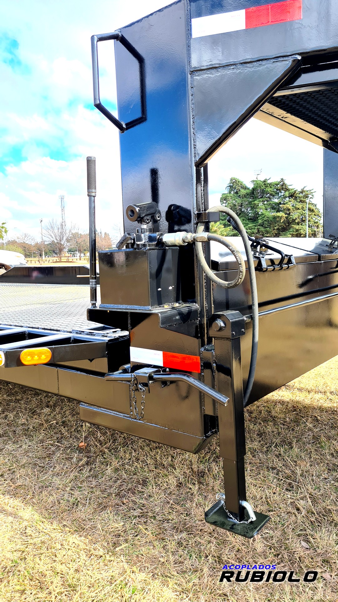Semirremolque basculante homologado, diseñado para facilitar la carga y descarga de maquinaria o bultos pesados, con alta capacidad de carga real y vial.