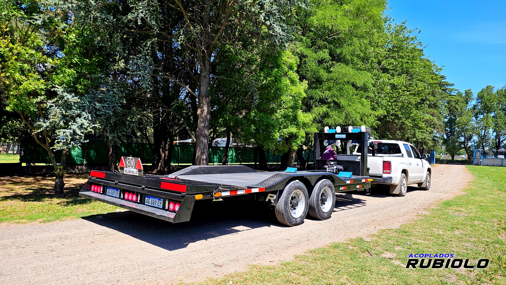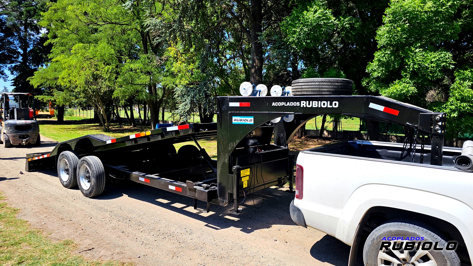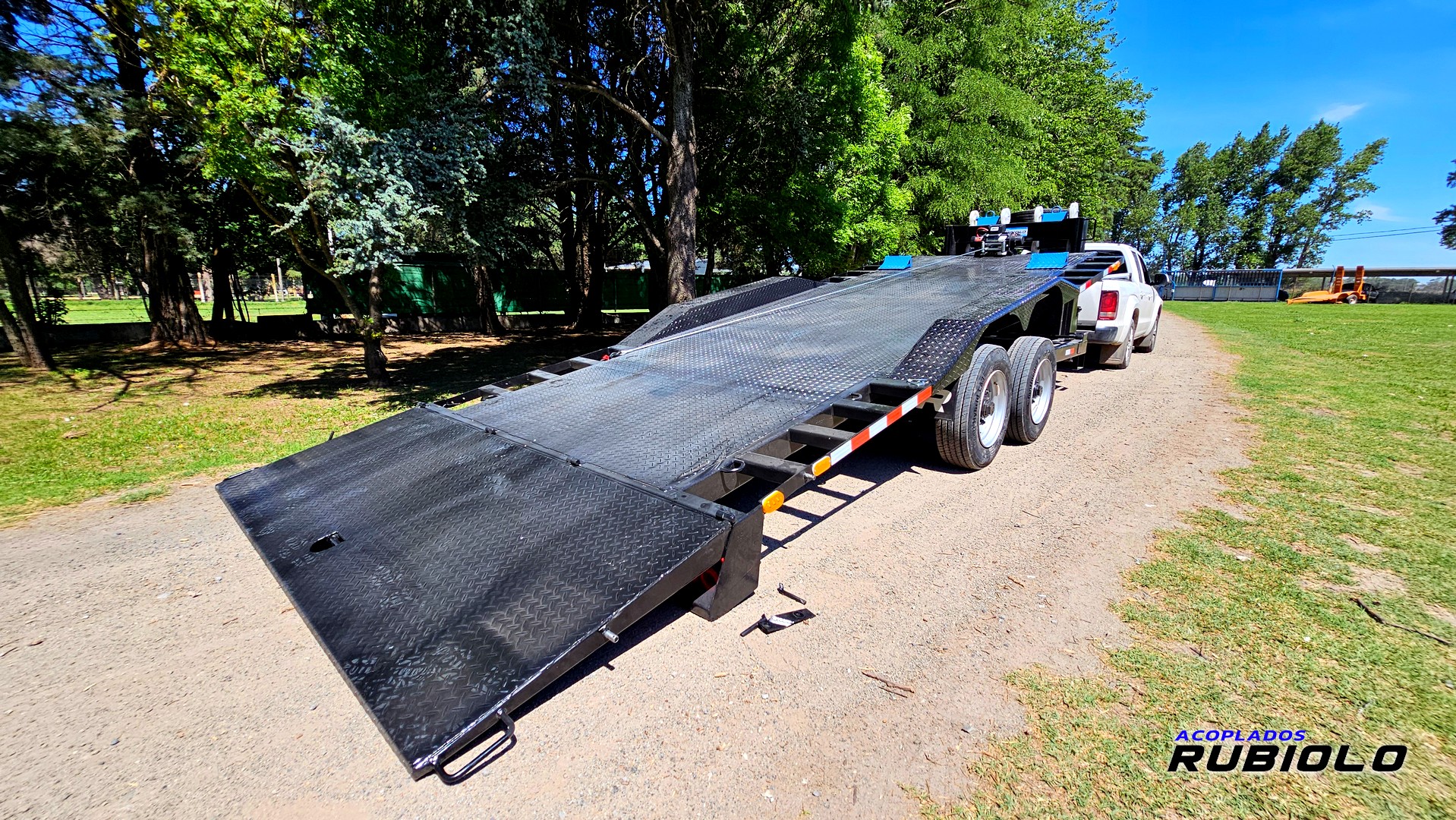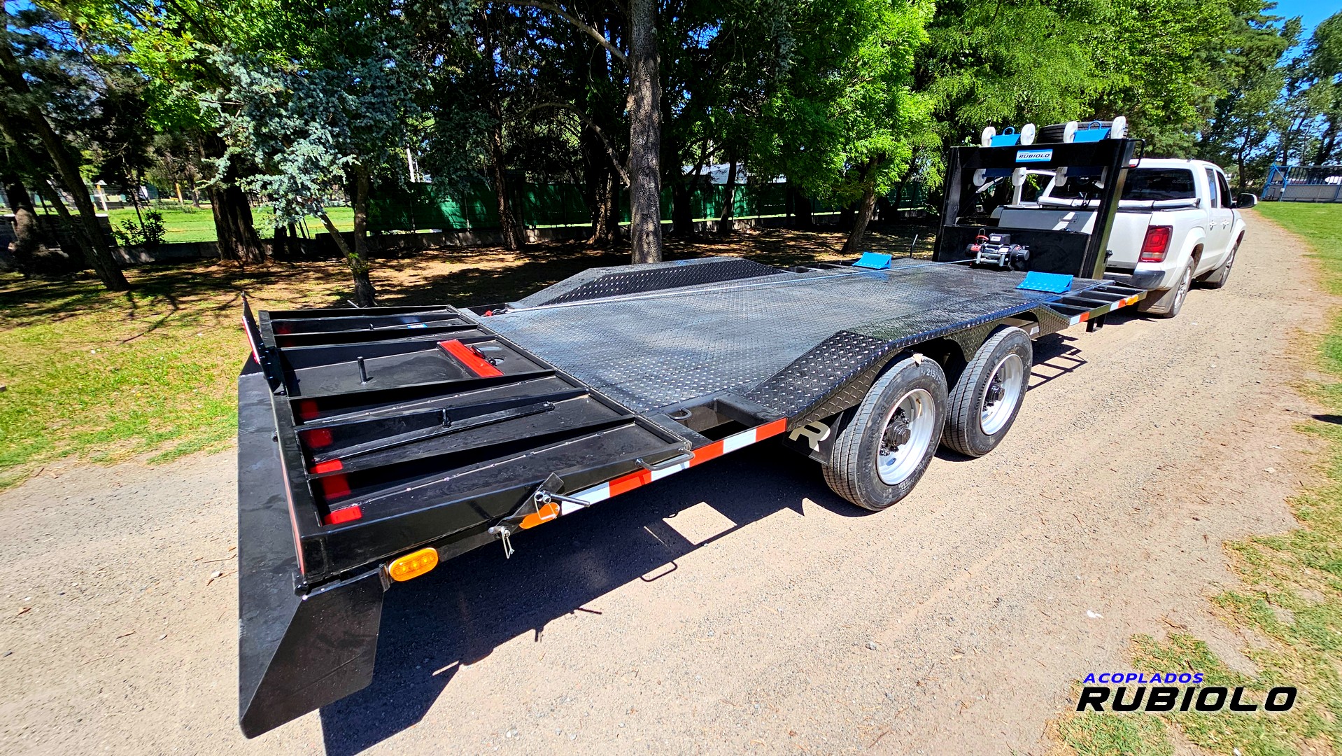 Semirremolque basculante homologado, diseñado para facilitar la carga y descarga de maquinaria o bultos pesados, con alta capacidad de carga real y vial.