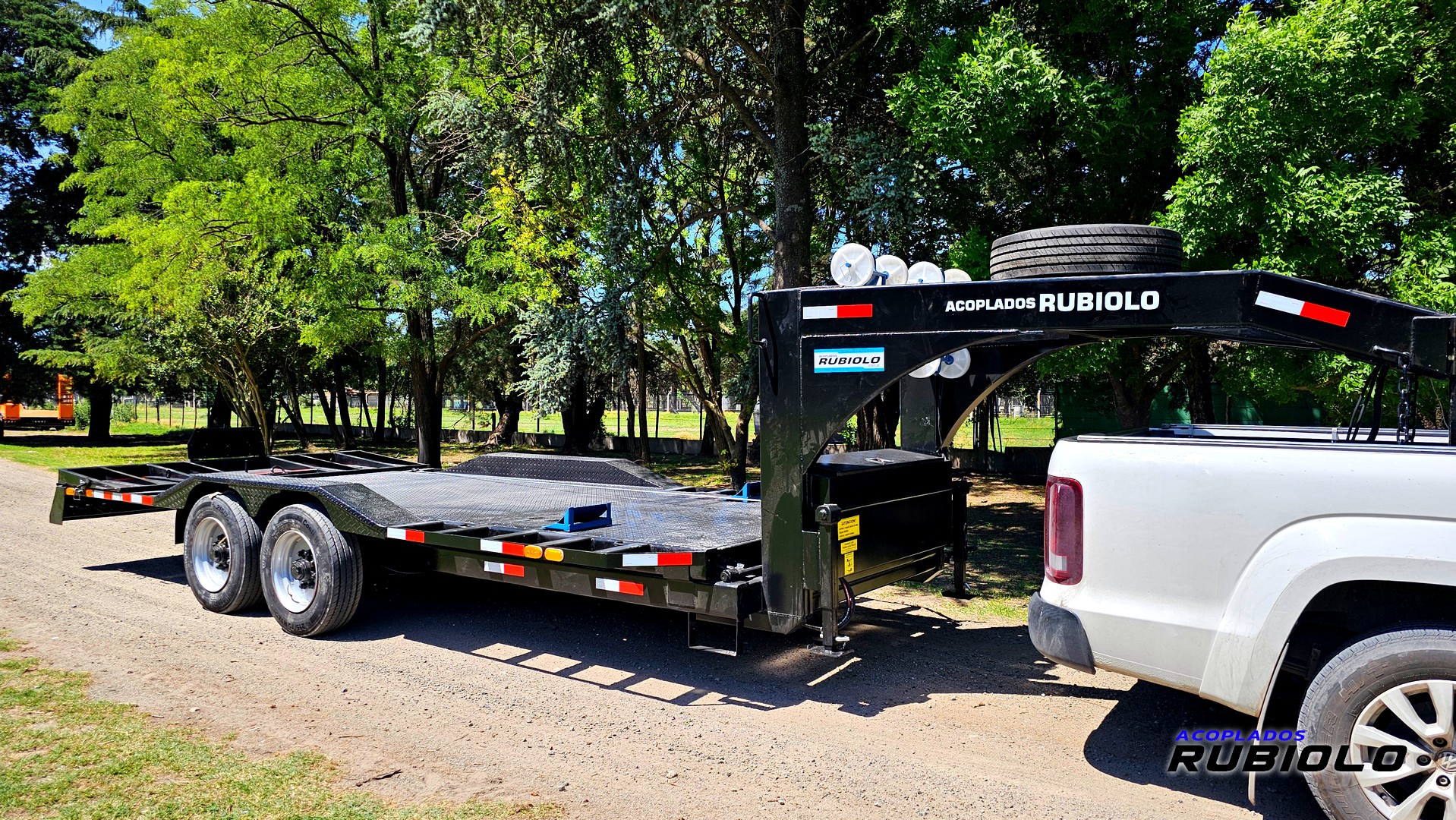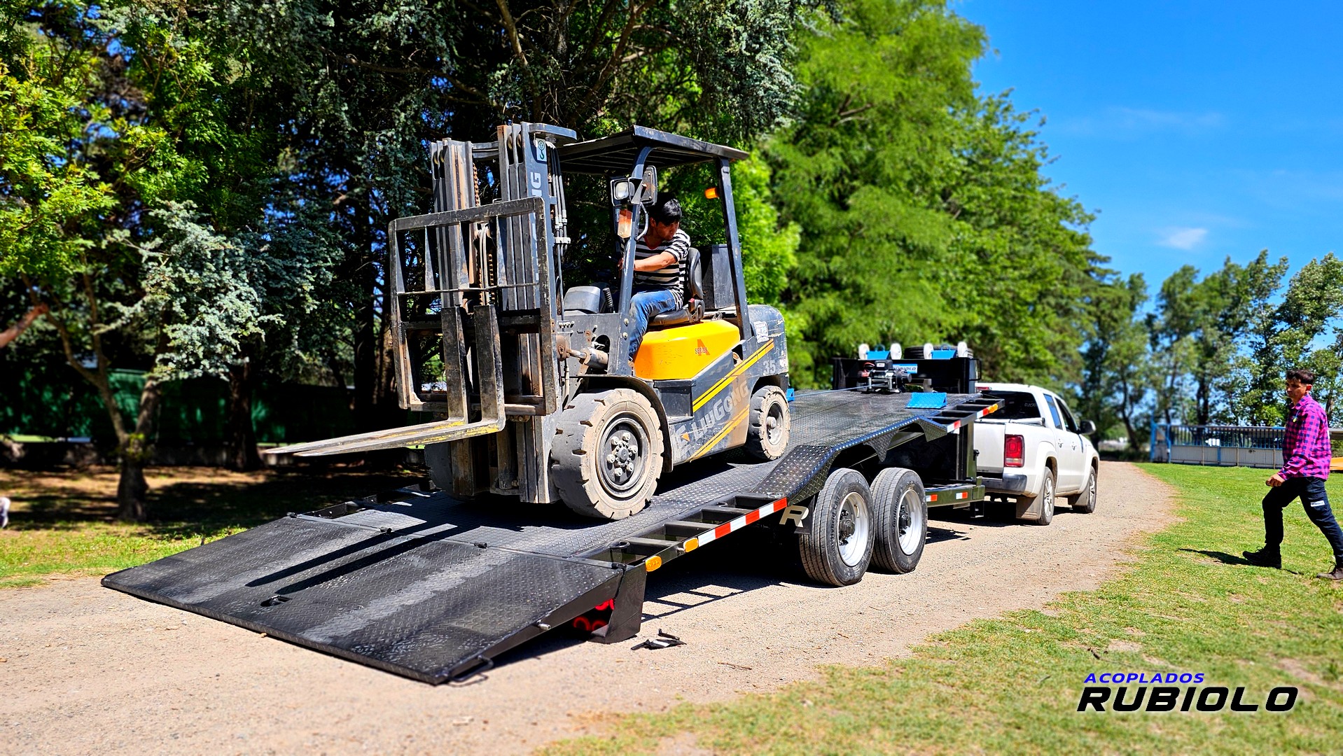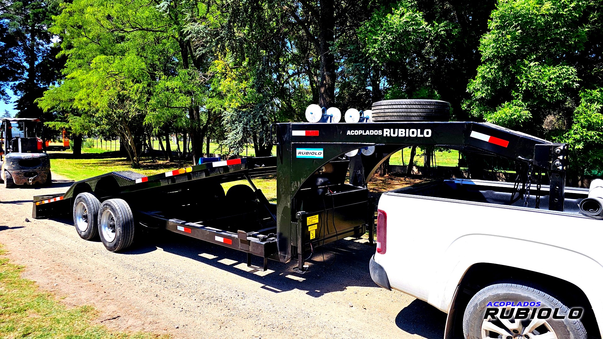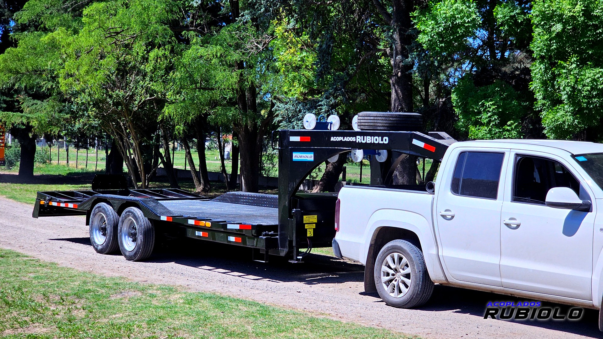 Semirremolque basculante homologado, diseñado para facilitar la carga y descarga de maquinaria o bultos pesados, con alta capacidad de carga real y vial.